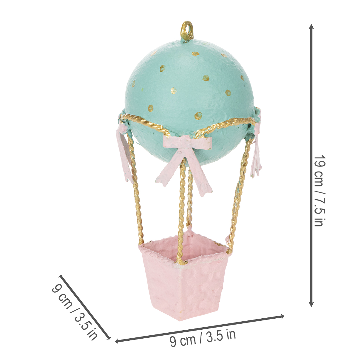 Sníte o nostalgické výzdobě a jemných pastelových odstínech, které promění každou místnost v oázu klidu? Naše jemná dekorace v podobě horkovzdušného balónu vnese do vašeho domova nádech lehkosti a fantazie. Kombinace jemné pastelové modré, matné růžové a elegantních zlatých detailů okamžitě evokuje romantickou atmosféru a vytváří nadčasový designový prvek. Ať už jako promyšlený dárek nebo speciální dekorace do dětského pokoje, tento mini horkovzdušný balón vyrobený z polyresinu s kovovým závěsem je poutavým prvkem, který vzbuzuje emoce. Balónek s praktickými 19 centimetry je ideální pro zdobení oken, polic nebo balkonů. Použijte jej jako originální bytový doplněk a užijte si okouzlující akcenty, které dodá, ať už je umístíte kamkoli.