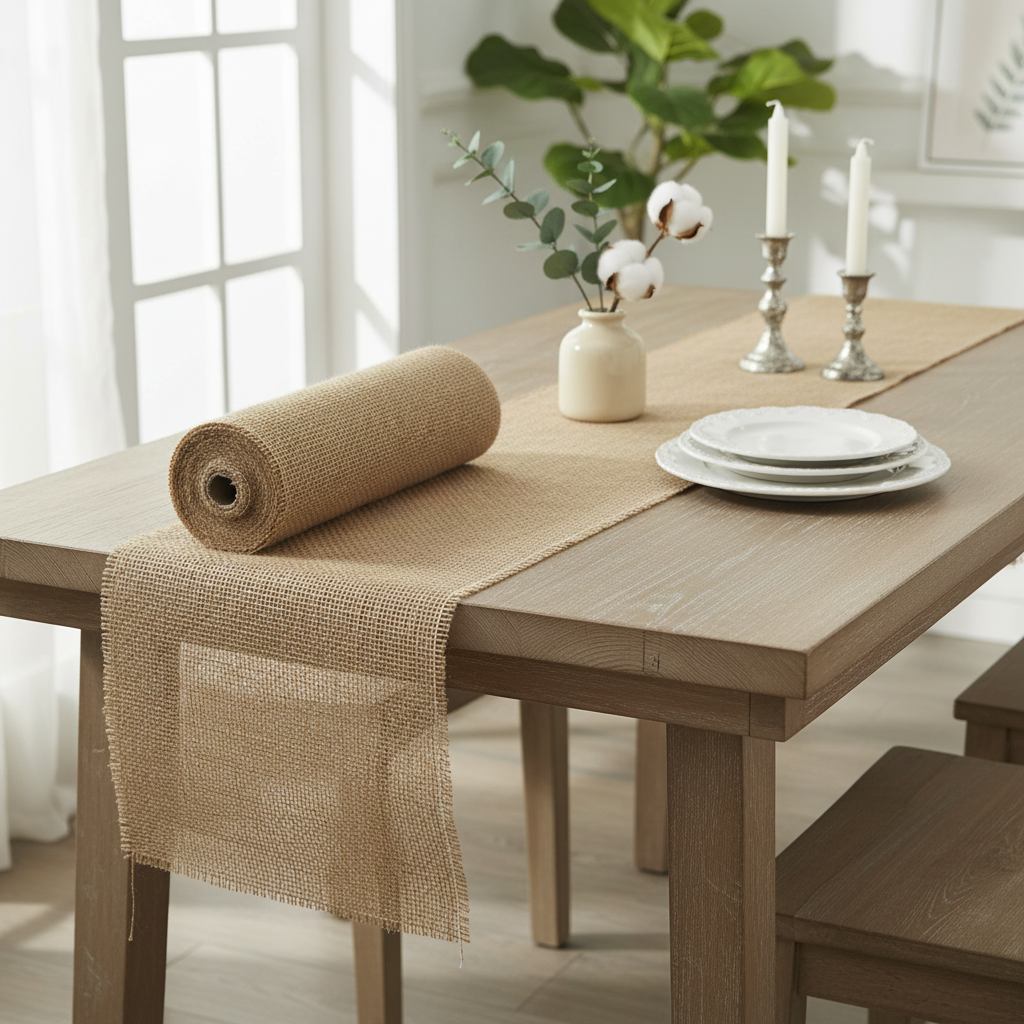 Pozor fanoušci venkovského stylu! Tuto přírodní jutovou stuhu lze báječně použít na všechny venkovské dekorace a dokonce i na svatební hostinu! Jutové vlákno je neupravené a skládá se tak, aby vytvořilo vzor s hrubými oky. Do okraje byla vetkána bavlněná nit, aby se vlákna nerozmotávala. Stuhu umístěte například o Vánocích přes stůl a poté na ni položte červenou ozdobnou stuhu, pár vlašských ořechů, šišky a svícen se sloupovou svíčkou. Získáte tak rustikální, elegantní nádech, který skvěle ladí s dřevěným nábytkem.
