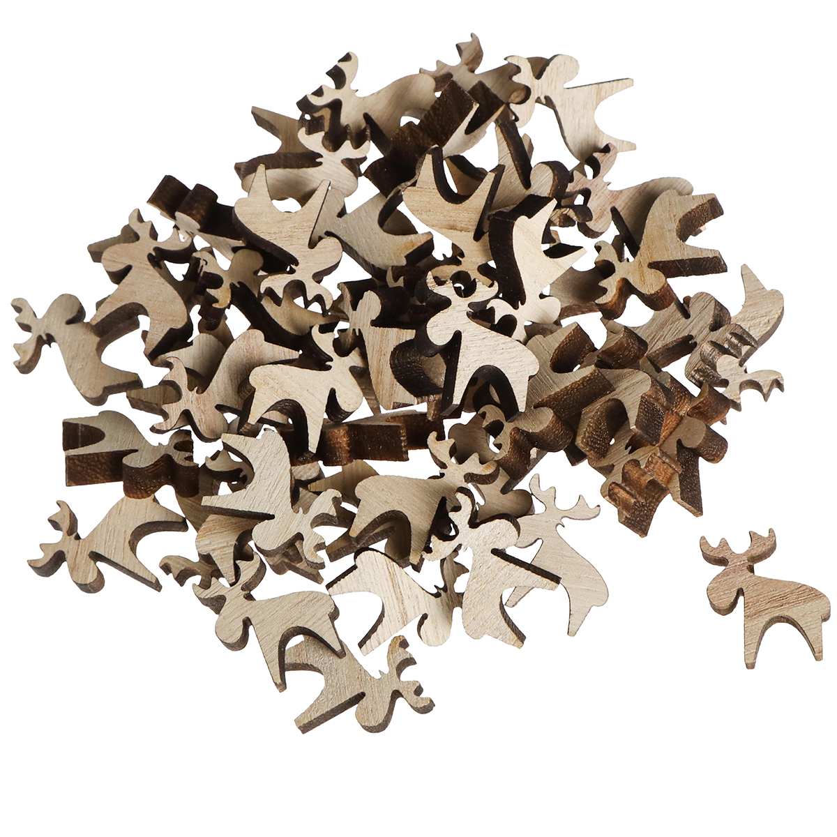 Okouzlující losí dekorace ze dřeva ve světlé přírodní barvě s tmavě hnědými okraji se skvěle hodí do každé vánoční dekorace. Obdržíte 108 roztomilých losích sypaných dílků. Použijte rozptýlené dekorace ke zkrášlení vašich stolních dekorací nebo pro kreativní řemeslné projekty. S velikostí kolem 2×2,5 cm a tloušťkou kolem 0,7 cm zaujmou losí figurky i ve stoje.