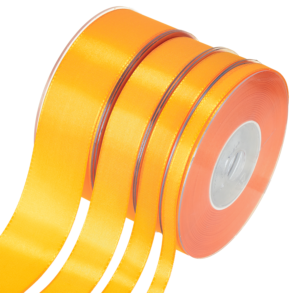 Dárková a ozdobná stuha v oranžové barvě je navinutá na plastové roli. Každá varianta je dlouhá kolem 50 metrů.