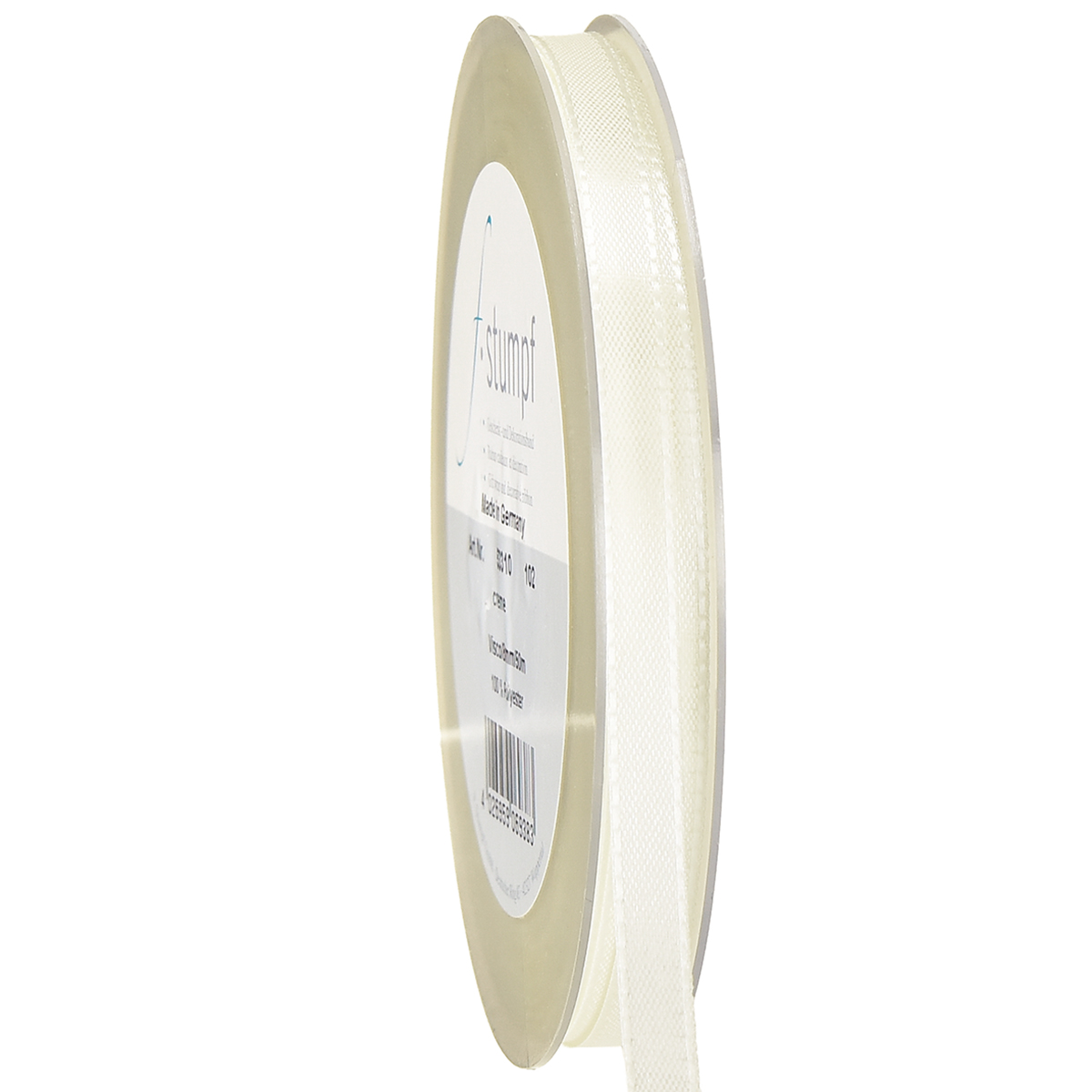 Dárková a ozdobná stuha krémové barvy měří asi 8 milimetrů na šířku a asi 50 metrů na délku. Skládá se ze 100% polyamidu a je navinutý na plastové cívce.