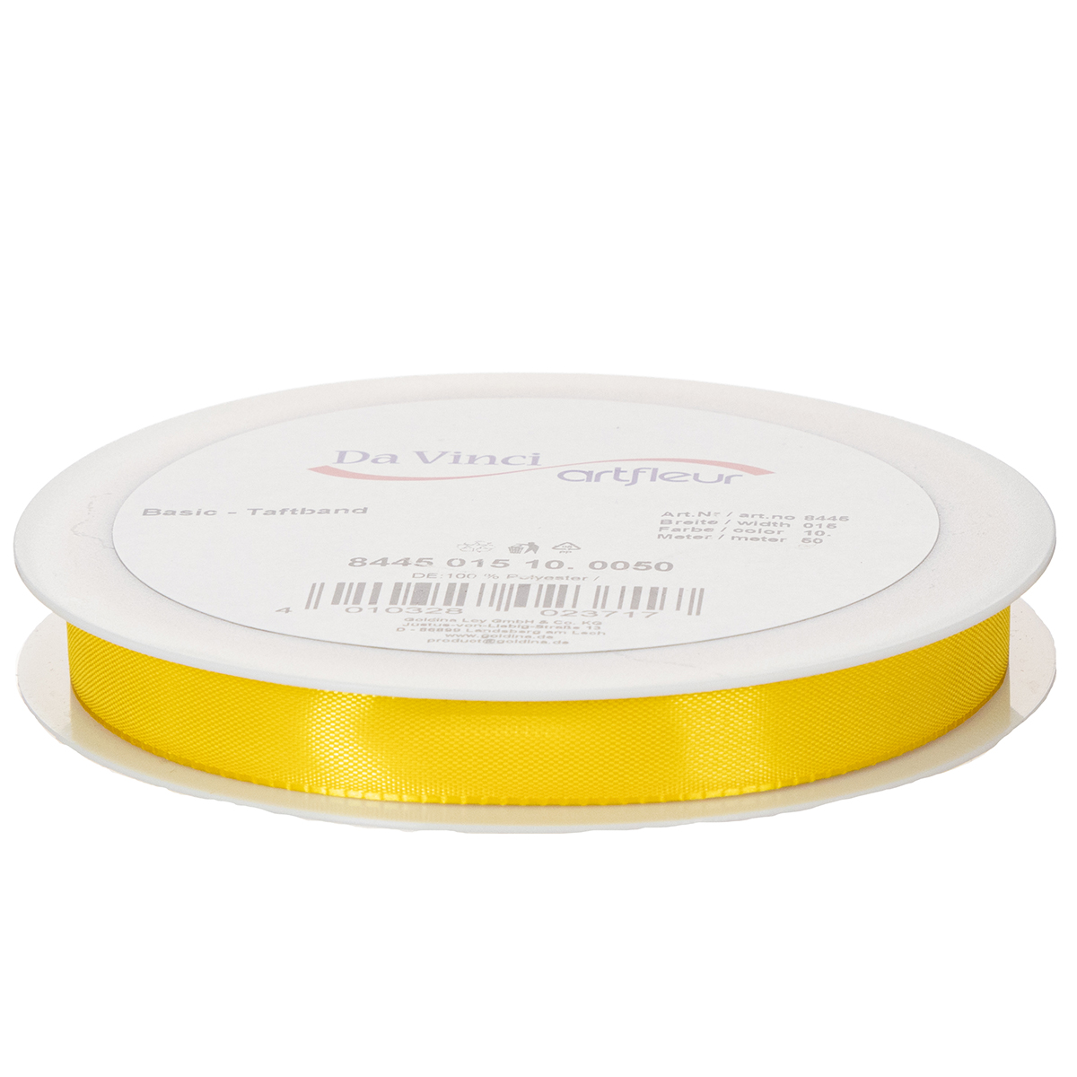 Dárková a dekorační stuha, taftová stuha, 15 mm x 50 m, žlutá