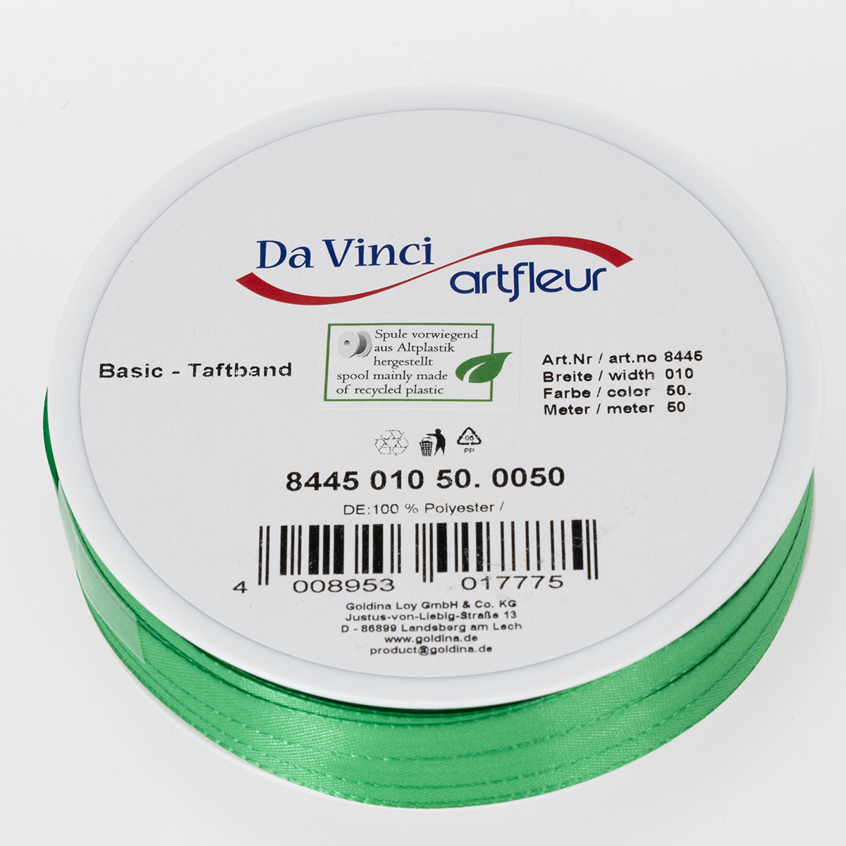 Tato zelená dekorativní stuha má vše, co si můžete přát od všestranné textilní stuhy. S šířkou 10 milimetrů a délkou 50 metrů je praktická i ekonomická. Její zářivá, ale zároveň decentní zelená barva krásně doplňuje květinové aranžmá, ať už v kombinaci s čerstvými květinami nebo jako součást jednoduchého, elegantního prostírání. Hedvábný lesk ji činí poutavou, zatímco pevný tkaný okraj zabraňuje třepení – ideální pro dlouhotrvající projekty.