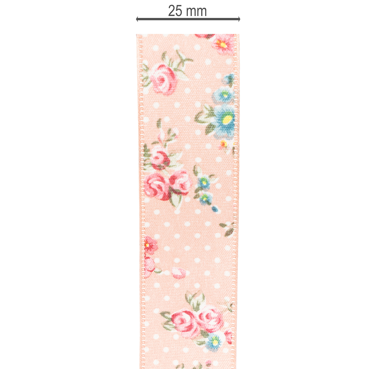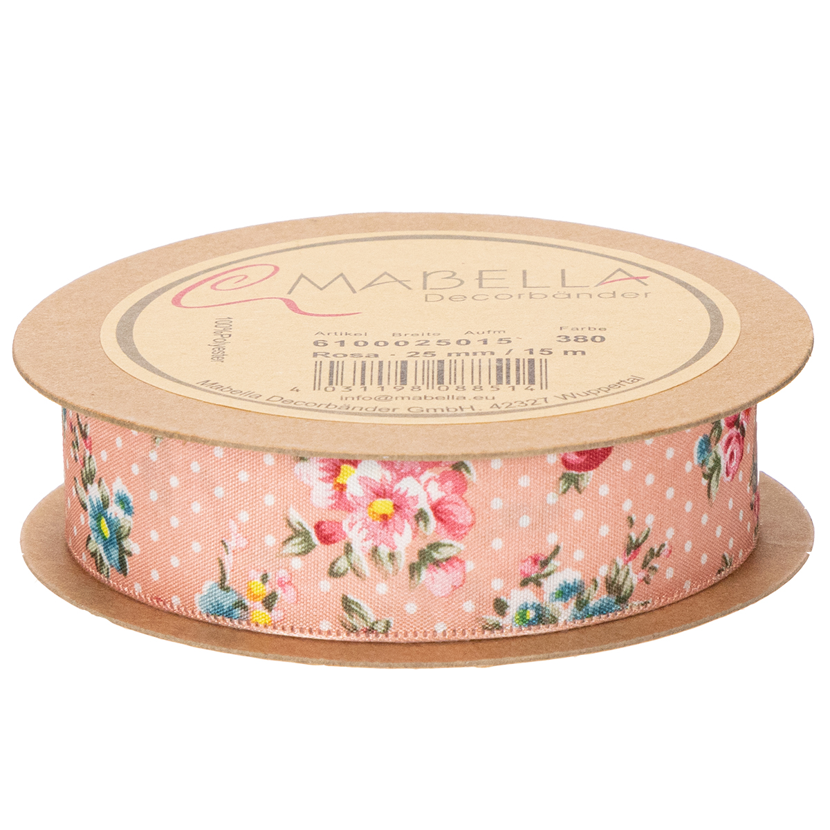 Název produktu: Dárková stuha s květinovým vzorem pro hravé dárky a tvoření, šířka 2,5 cm, délka 15 m