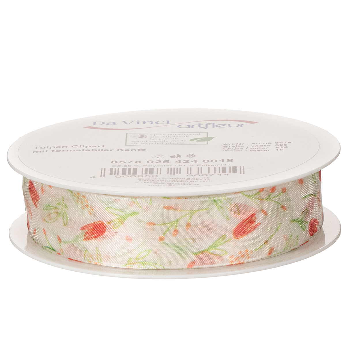 Název produktu: Dárková stuha s tulipánovým vzorem, kreativní pro zvláštní příležitosti a sezónní dekorace, šířka 2,5 cm, délka 18 m