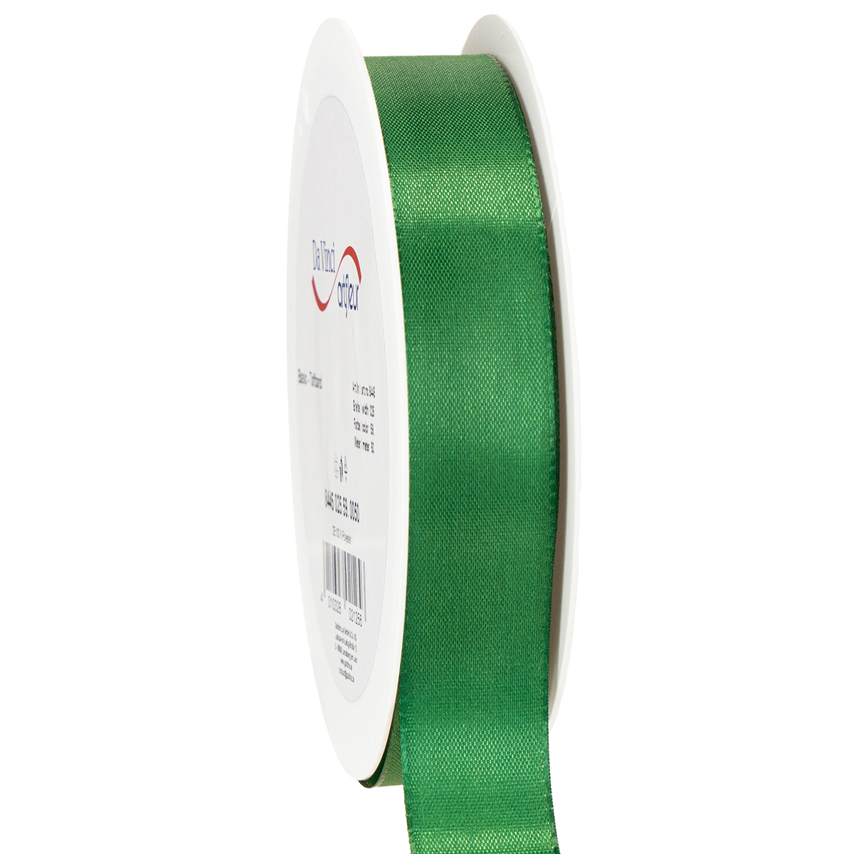 Tmavě zelená dárková a ozdobná stuha je široká přibližně 25 milimetrů, dlouhá asi 50 metrů a je vyrobena ze 100% polyesteru. Protože je navinutá na praktické plastové cívce, můžete ji snadno uložit do zásuvky nebo zavěsit na odvíječ.