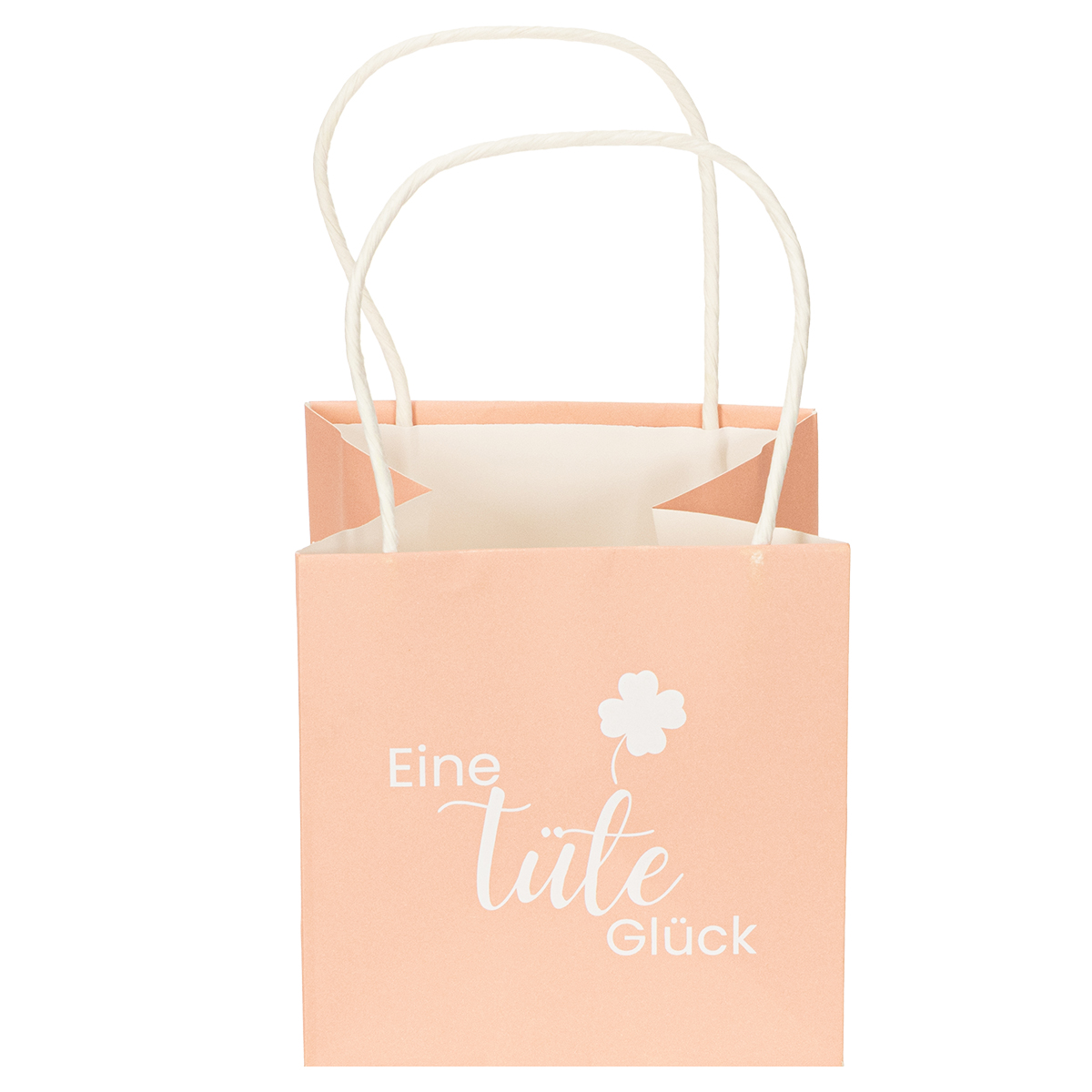 Kdo by to ještě nezažil? Chcete zabalit malý dárek s láskou, ale bez velkých komplikací. Perfektní! Naše dárkové tašky „Sáček štěstí“ jsou ideálním řešením. Tyto roztomilé, barevné papírové tašky s potištěným designem nejen vykouzlí úsměv na tváři obdarovaného, ale také skutečně upoutají pozornost. Veselé barvy žluté, oranžové, zelené a růžové okamžitě vytvoří příjemný pocit lehkosti a radosti. Design? Jednoduchý a okouzlující s malým nápisem „Sáček štěstí“, ideální pro zvláštní příležitosti – ať už narozeniny, svatby nebo malé dárky pro vaše blízké. Co je obzvláště praktické: Tyto tašky jsou nejen hezké, ale také pevné a mají rukojeť pro snadné přenášení. I jejich plnění je zábava!