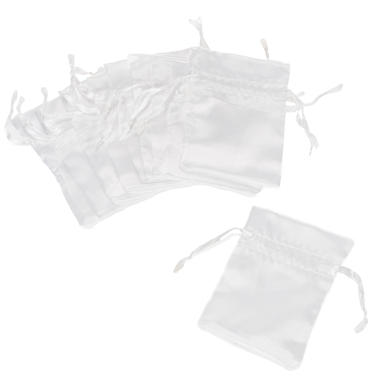 Název produktu: Dárkové tašky, saténové sáčky, bílé, 6,5 x 10 cm, 10 kusů