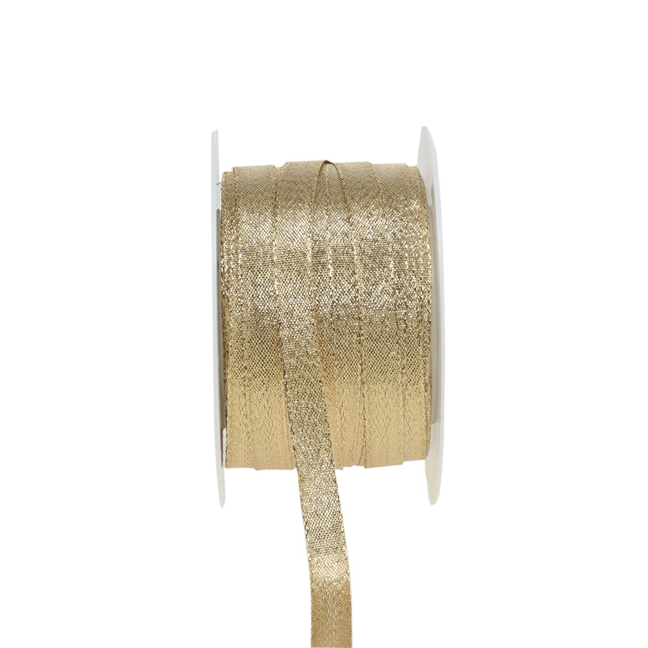 Vánoční stuha Lurex ve zlaté barvě je dodávána na praktické plastové cívce. Jeho délka je asi 50 metrů, šířka asi 10 milimetrů.
