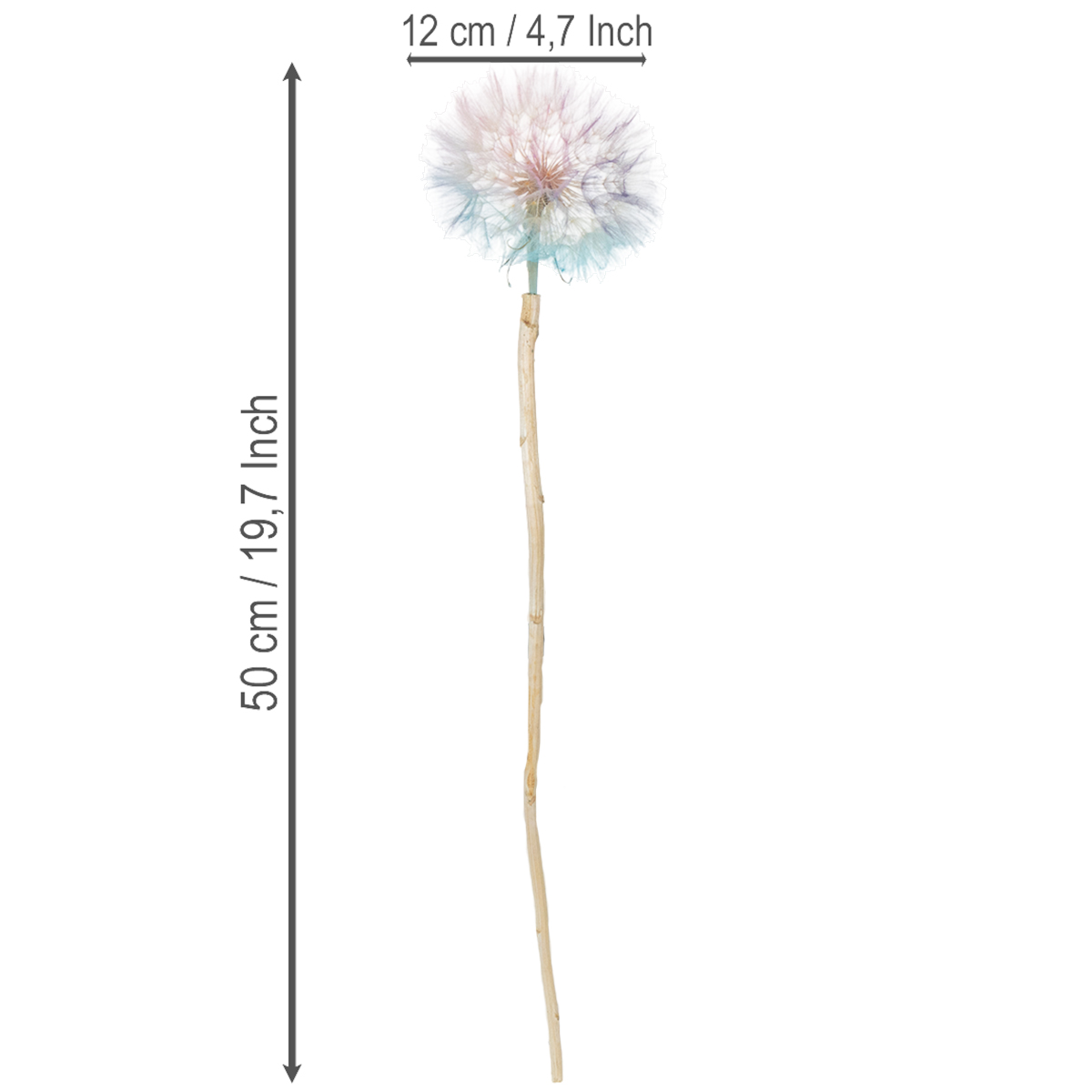 Název produktu: Dekorace z pampelišky, sušené květiny, stabilizované a barvené, jemné, odolné, 12 cm, 4 kusy