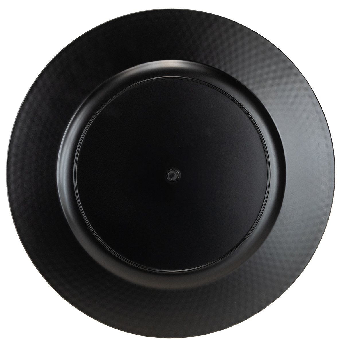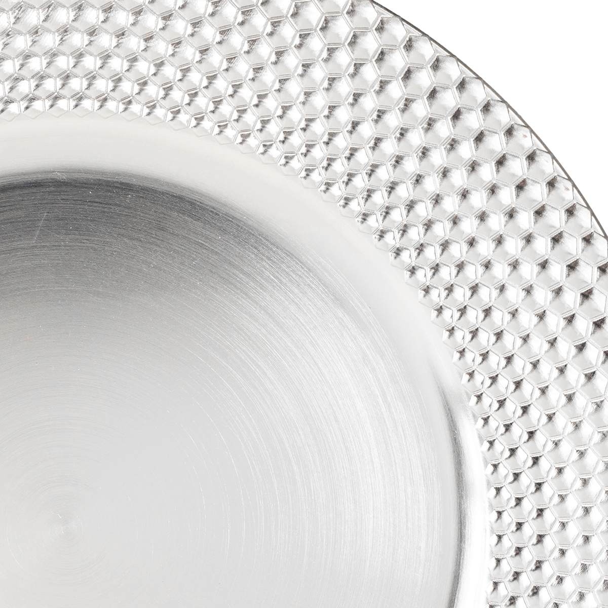 Ale právě šestiúhelníkový vzor na okraji dělá z talíře pozornost. Stříbrná barva dodává ozdobnému talíři velkou zářivost. Spodní strana zůstává neošetřená v černé barvě.