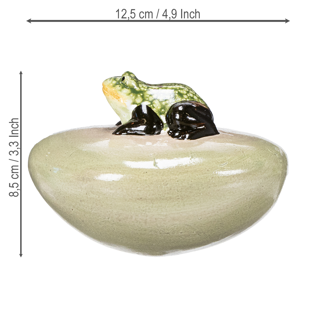 - Barva: Přírodní zelený odstín žáby, béžový odstín kamene