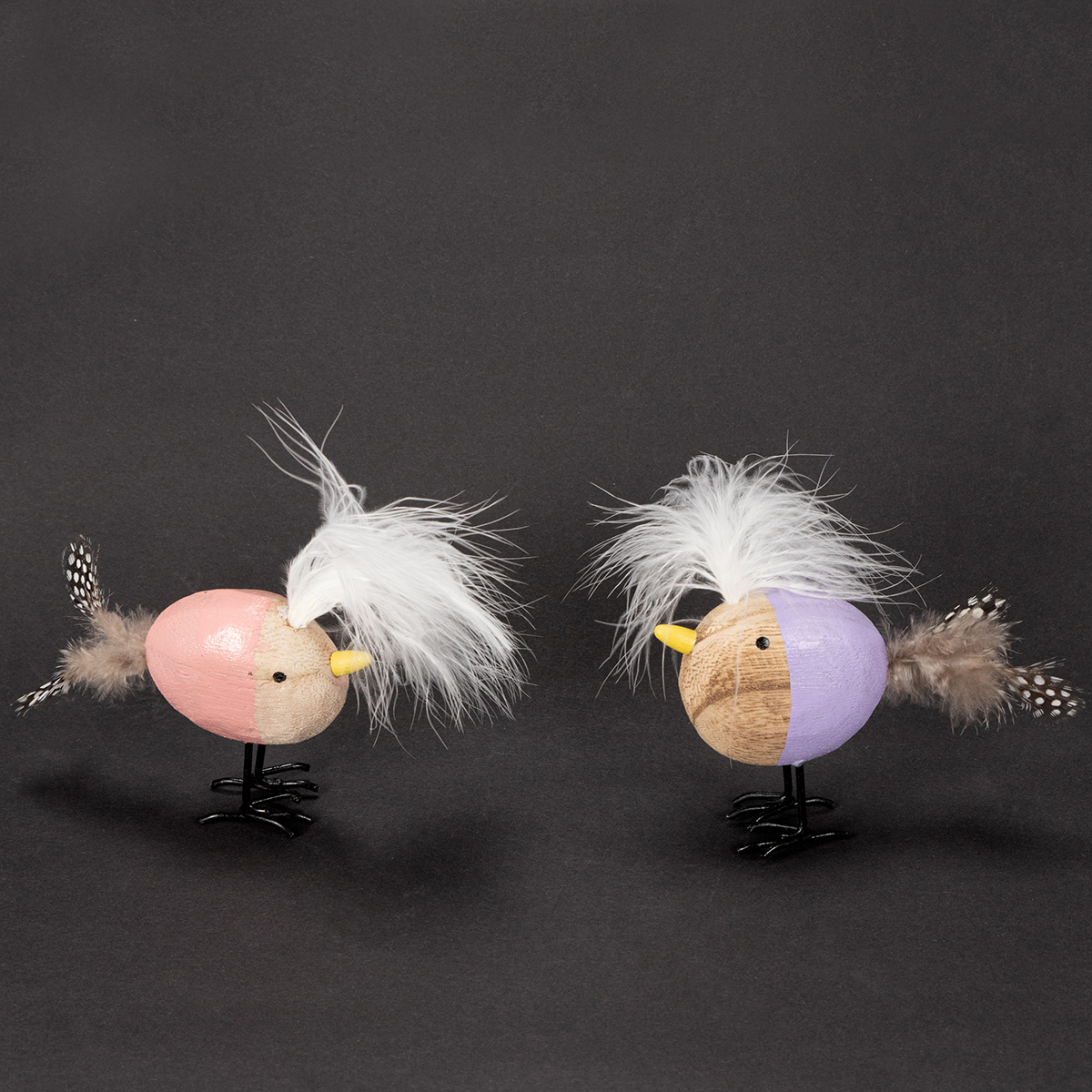 Každý z našich dekorativních ptáčků je vyroben z pravého dřeva s pečlivou pozorností k detailu. Jemné, pravé ptačí peří činí každý kus jedinečným a dodává mu přirozené kouzlo. Tito dekorativní dřevění ptáčci s rozměry 10 cm na délku, 3 cm na šířku a 9 cm na výšku se perfektně hodí na prostřený stůl nebo na jaře na okenní parapet. Kombinace fialové a růžové vytváří jemnou a veselou atmosféru – ideální pro vytvoření příjemné a radostné atmosféry.
