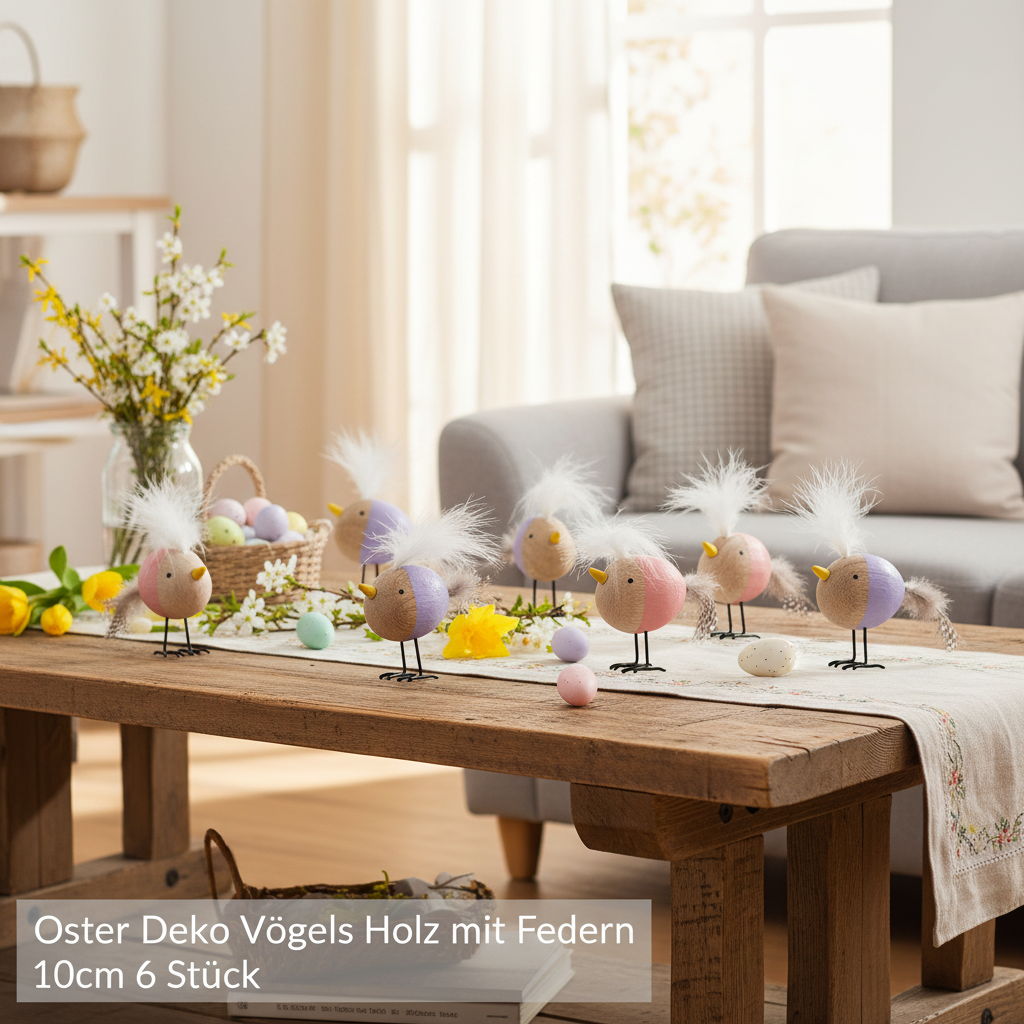 Každý z našich dekorativních ptáčků je vyroben z pravého dřeva s pečlivou pozorností k detailu. Jemné, pravé ptačí peří činí každý kus jedinečným a dodává mu přirozené kouzlo. Tito dekorativní dřevění ptáčci s rozměry 10 cm na délku, 3 cm na šířku a 9 cm na výšku se perfektně hodí na prostřený stůl nebo na jaře na okenní parapet. Kombinace fialové a růžové vytváří jemnou a veselou atmosféru – ideální pro vytvoření příjemné a radostné atmosféry.