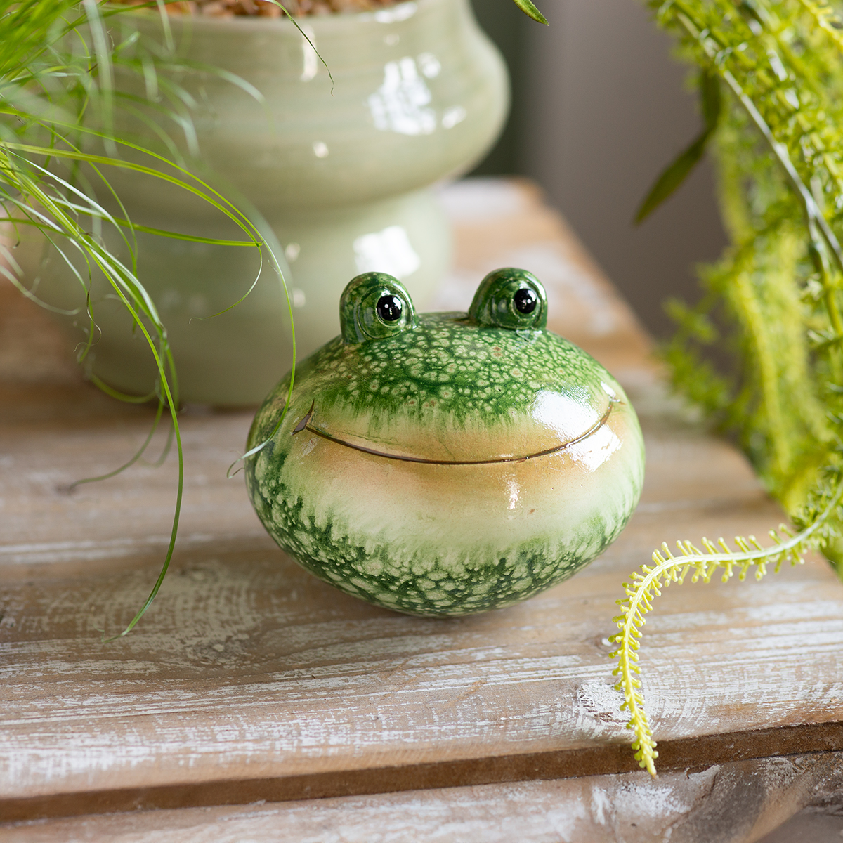Potřebuje vaše zahrada nebo obytný prostor výrazný detail? Naše keramické figurky žab jsou víc než jen dekorace – jsou to skutečná malá umělecká díla. Měří 11 cm, jsou decentní, ale rozhodně ne nenápadné. Sytá zelená barva krásně ladí s přírodou a vnáší nádech svěžesti do každé místnosti nebo venkovního prostoru. Tyto malé žabky si zamilují zejména ti, kteří oceňují hravý nebo dětský styl.