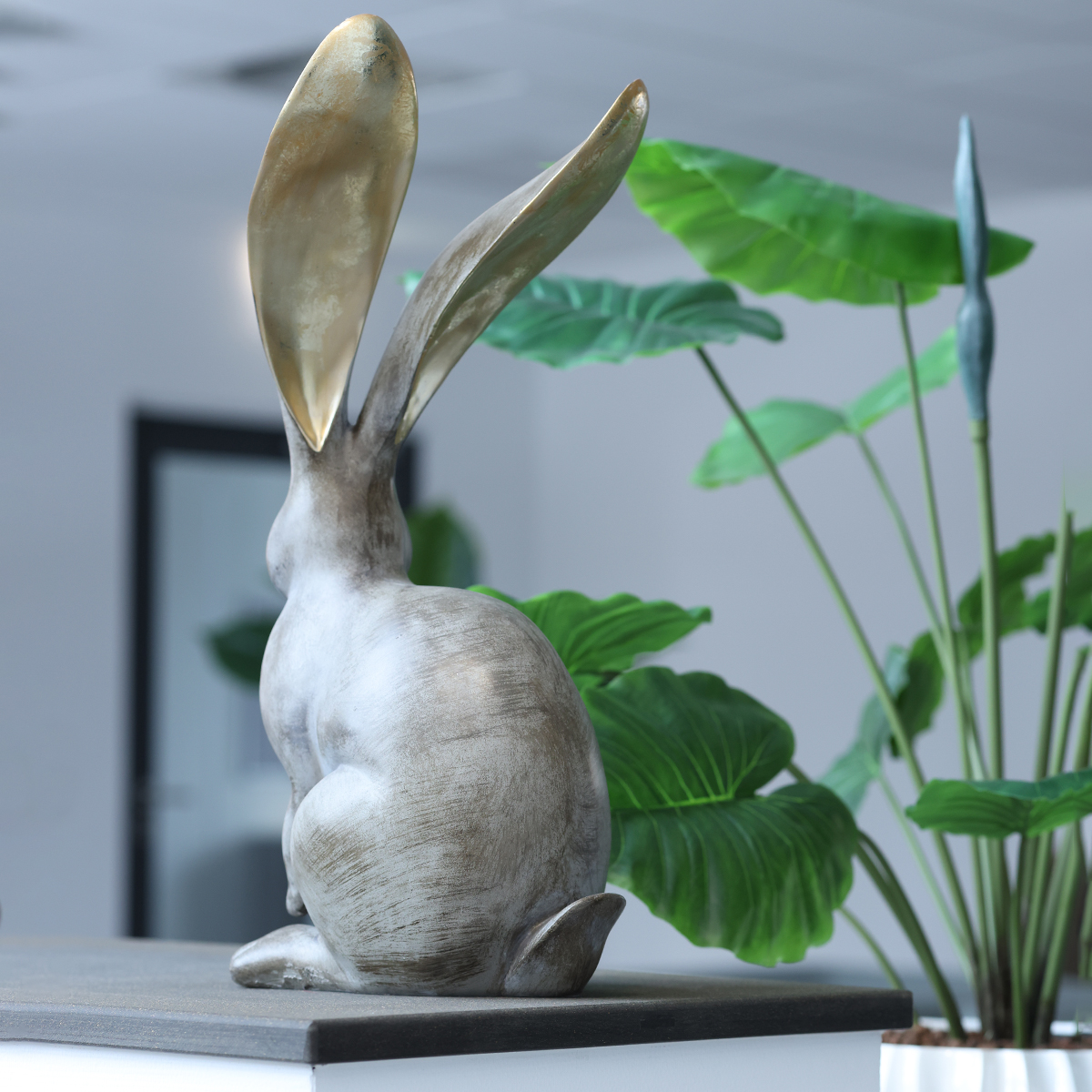 Jaro je čas na zdobení! Hledáte speciální ozdobu pro vaše velikonoční nebo jarní dekorace? Náš dekorativní králík s úctyhodnou výškou 52 cm by mohl být přesně tím pravým kouskem, který splní váš sen o zdobení. Díky svému elegantnímu designu a mimořádně dlouhým zlatým uším je tato figurka králíka nejen skutečným poutačem, ale také vyjádřením nadčasové estetiky. Ať už v obývacím pokoji, předsíni nebo venku na zahradě – tento králík dodá každému prostoru nádech sofistikovaného kouzla.