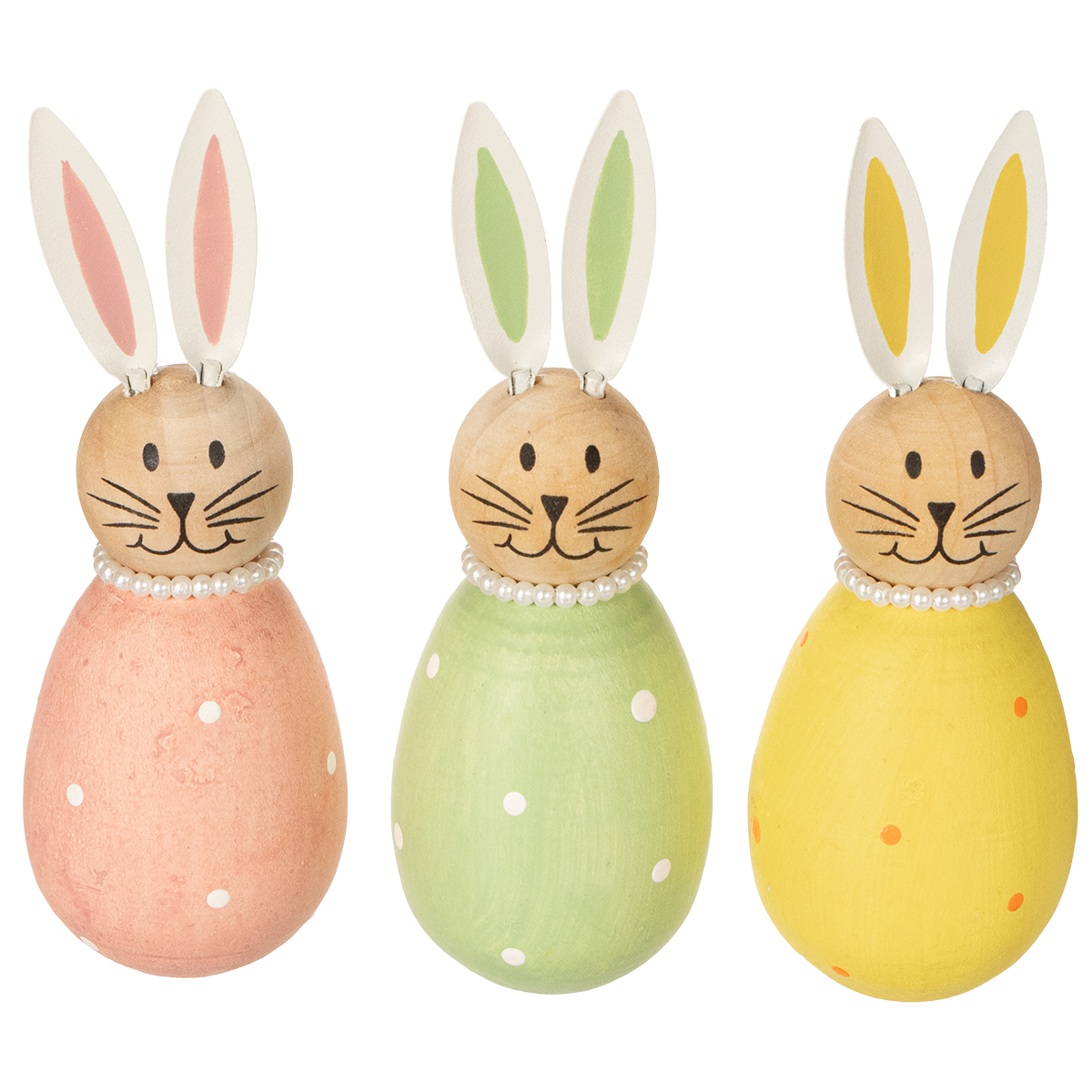 Dekorativní figurky králíků ve tvaru vajíčka pro jarní dekoraci domova, 12 cm, 3 kusy