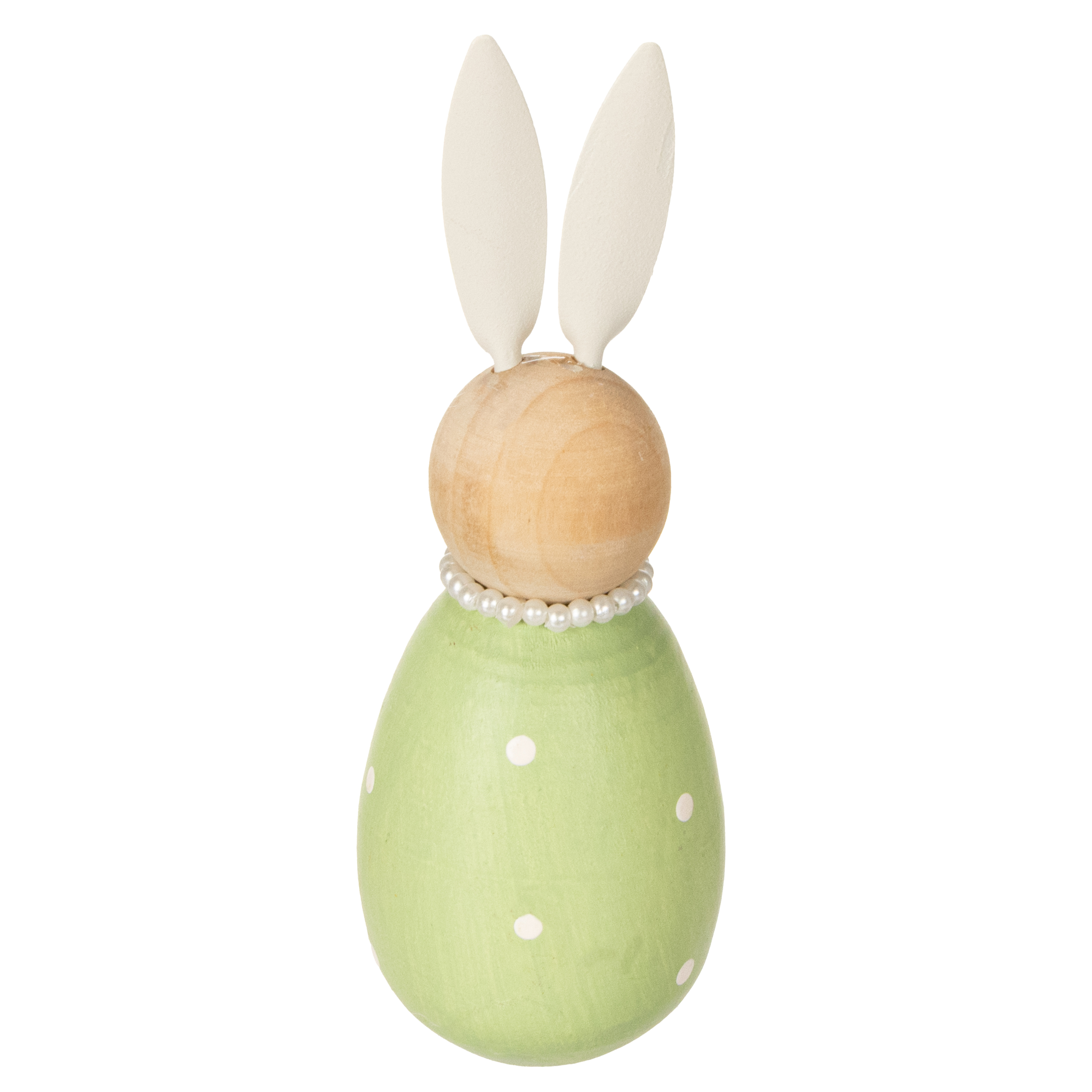 Co může být lepšího než přivítat jaro s okouzlujícími dekoracemi? Tyto dekorativní figurky zajíčků ve tvaru vajíček nejen vykouzlí úsměv na tváři každému, ale také naplní váš obytný prostor veselou jarní atmosférou. Ať už na parapetu, na velikonočním stole nebo na poličce, tyto s láskou vyrobené dekorativní figurky jistě upoutají pozornost každého. Díky jemným pastelovým odstínům růžové, žluté a zelené a ručně malovaným detailům dodají vašemu domovu hřejivý a příjemný nádech. Jemné kovové ouška, decentní tečky na těle vajíček a jemné perlové náhrdelníky kolem krku – tyto drobné detaily dělají z těchto figurek skutečně výjimečný zážitek. Chcete dodat svým pokojům nádech jarní lehkosti nebo vylepšit své velikonoční dekorace? Pak jsou tito barevní dřevění zajíčci perfektní volbou!