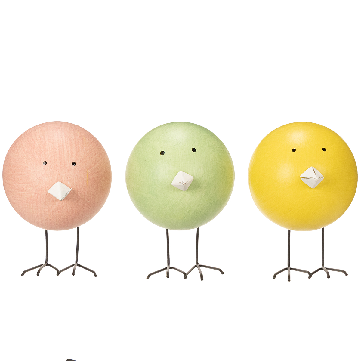 Hledáte chytrý způsob, jak dodat vašemu domovu hravý a veselý nádech? Naše kulaté dekorativní figurky kuřat okamžitě rozzáří každou místnost. Ať už jako okouzlující jarní dekorace na jídelním stole, barevný doplněk slavnostního prostírání nebo roztomilý poutač v dětském pokoji – tyto tři malé figurky ve žluté, růžové a zelené barvě zaručeně vykouzlí úsměv na tváři každému. Kombinace dřeva na těle a kovu na zobácích a nohách dodává kuřatům pevnou základnu a moderní designový nádech.