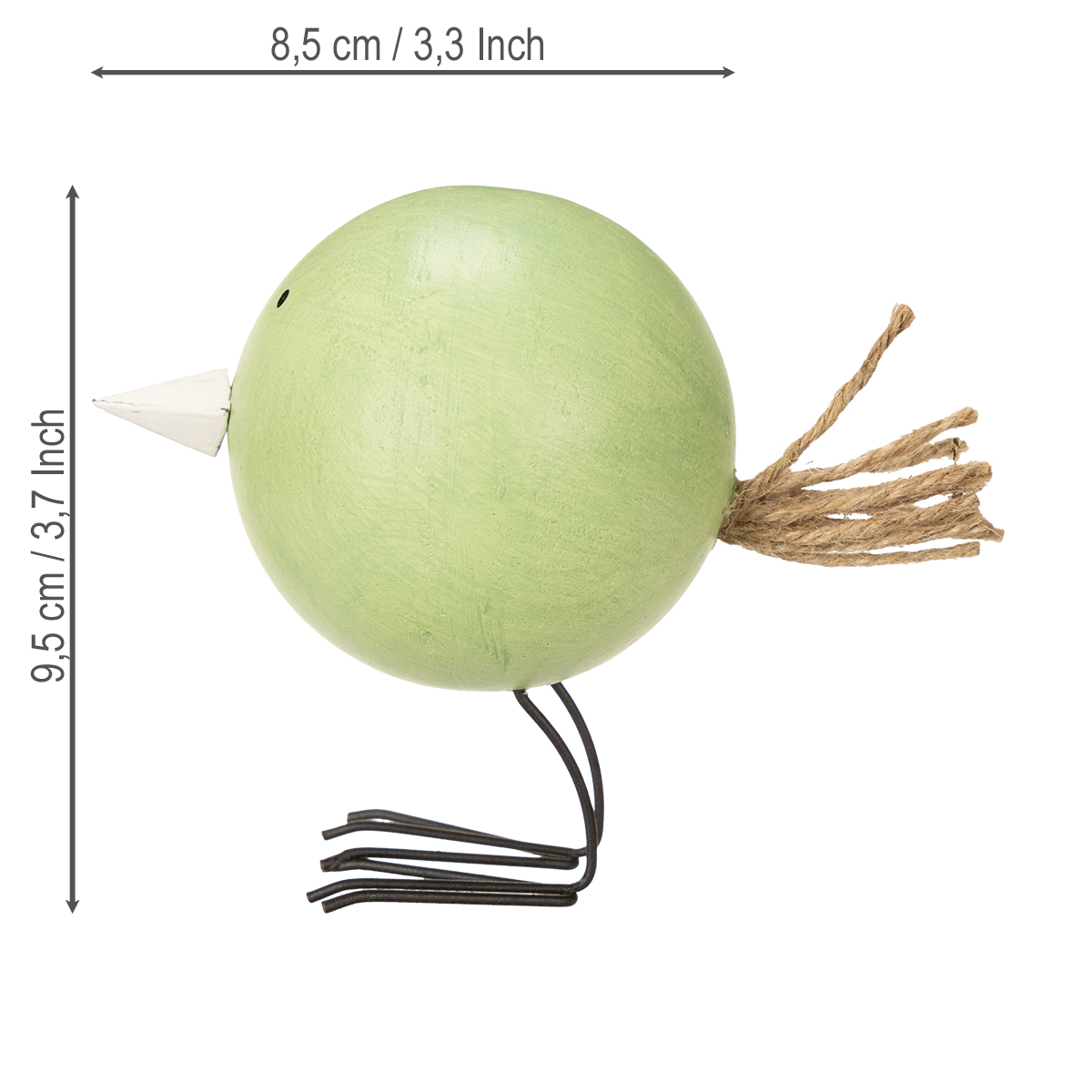 Tato sada se skládá ze tří kuřátek ve žluté, růžové a zelené barvě. Jejich lehce lesklý povrch dodává nádech živosti, aniž by byl příliš výrazný. S výškou 9,5 cm a průměrem 8,5 cm jsou dostatečně kompaktní pro flexibilní vystavení – ať už na policích, komodě nebo přímo na stole. Veselé barvy jsou obzvláště harmonické a krásně se kombinují s dalšími jarními nebo velikonočními dekoracemi. Pro stylový a přirozený vzhled lze tato kuřátka dokonce zkombinovat s jemnými květinovými aranžmá nebo jinými dřevěnými předměty. Skutečně univerzální doplněk do vaší dekorace!