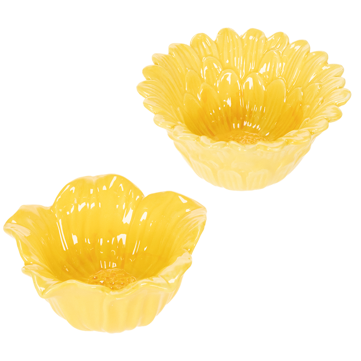 Tyto květinové misky okouzlují svým propracovaným květinovým vzorem, který připomíná rozkvetlou květinu. Lesklá žlutá barva keramiky vytváří teplou a příjemnou atmosféru, díky čemuž se perfektně hodí do různých interiérových stylů – od moderního bydlení a retro stylu až po výrazné japonské prostředí. Precizní řemeslné zpracování misek podtrhuje jejich elegantní vzhled, zatímco jejich kompaktní velikost umožňuje flexibilní umístění: s průměrem 13 cm se harmonicky začlení do jakéhokoli prostředí.