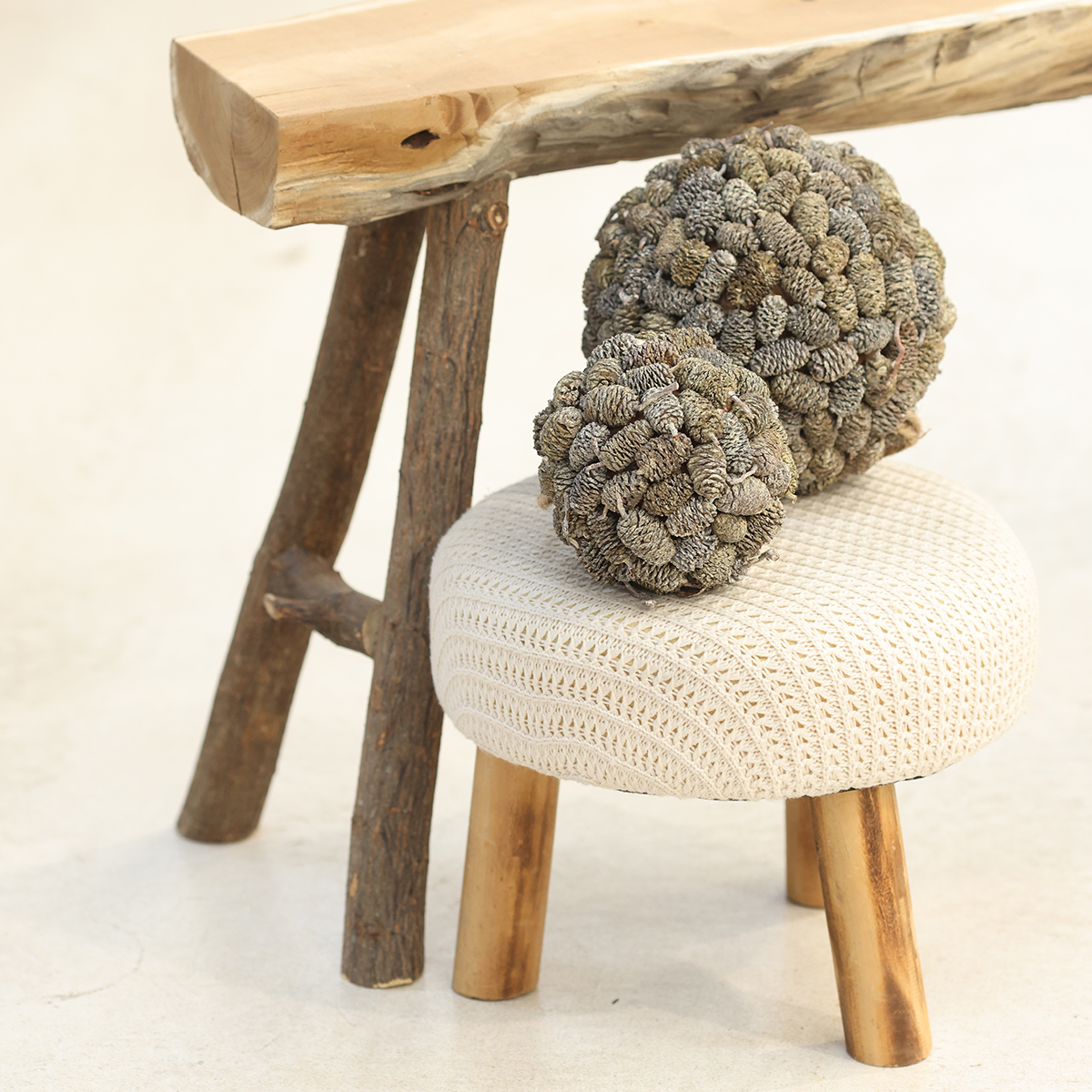 Materiál: Polystyren, olšové kužely, juta