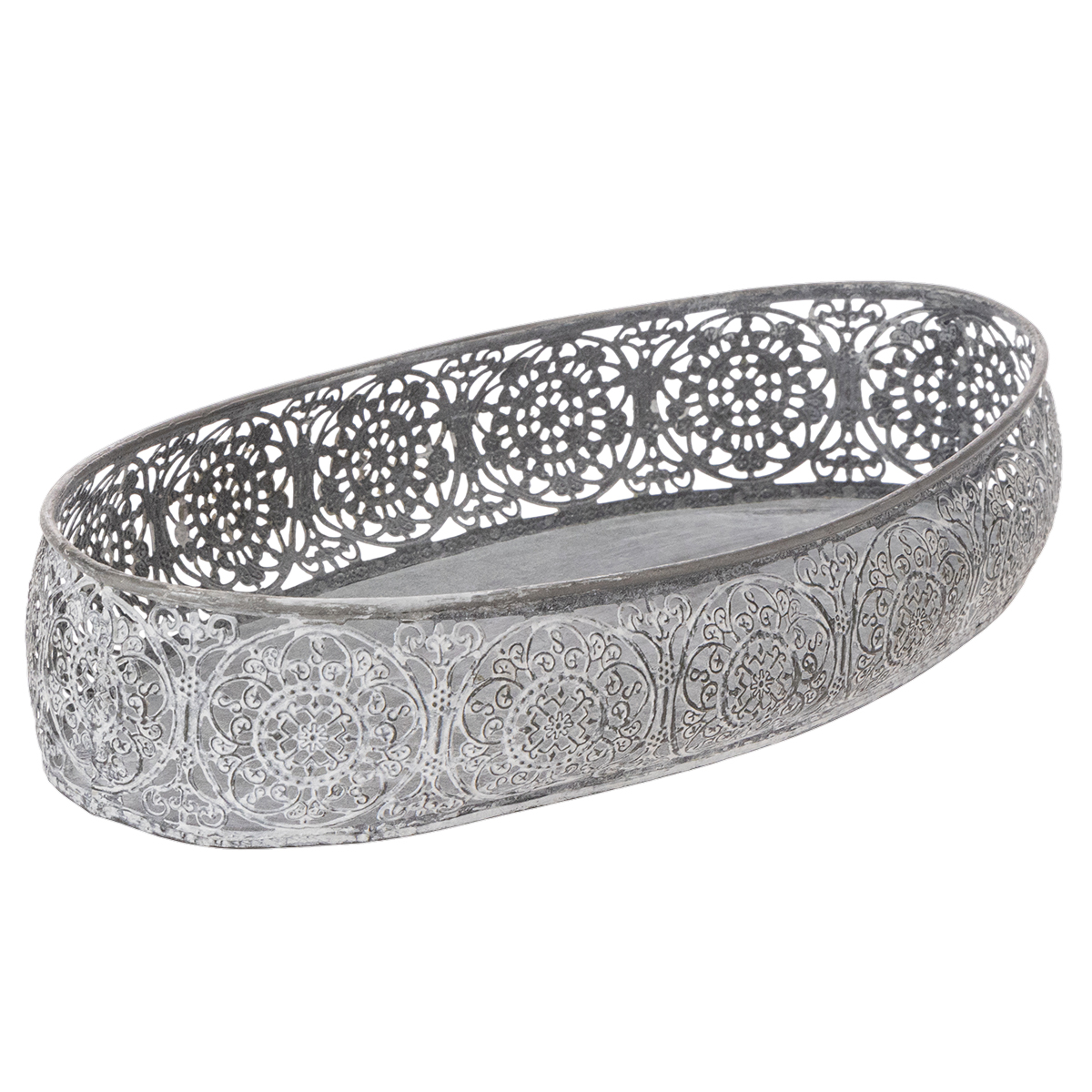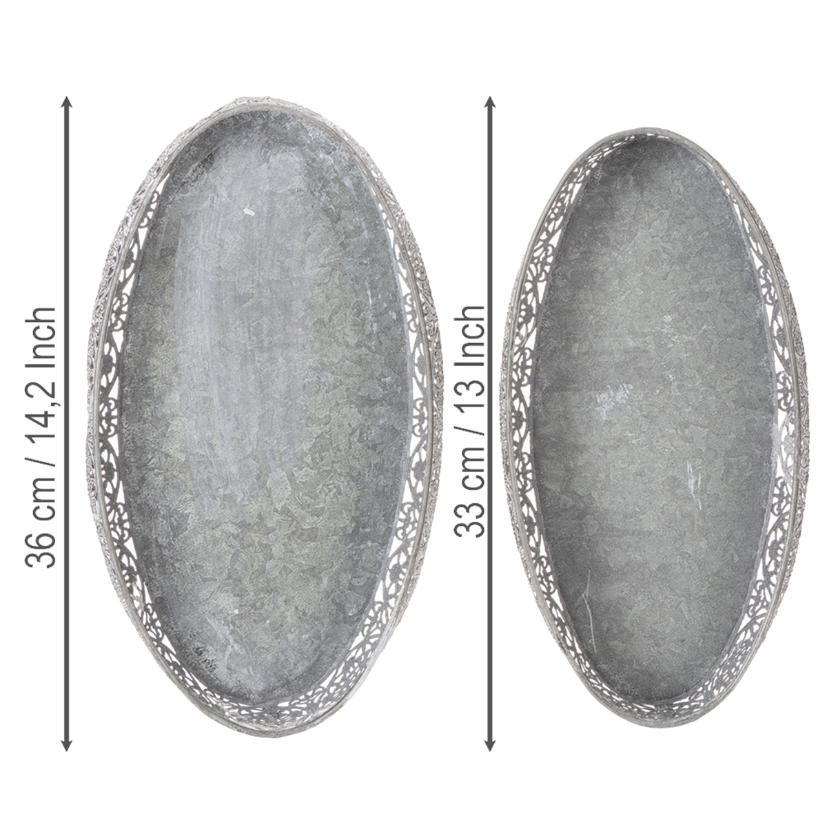Dekorativní kovová miska, šedý vzor, oválná, D36cm/33,5cm, sada 2 kusů