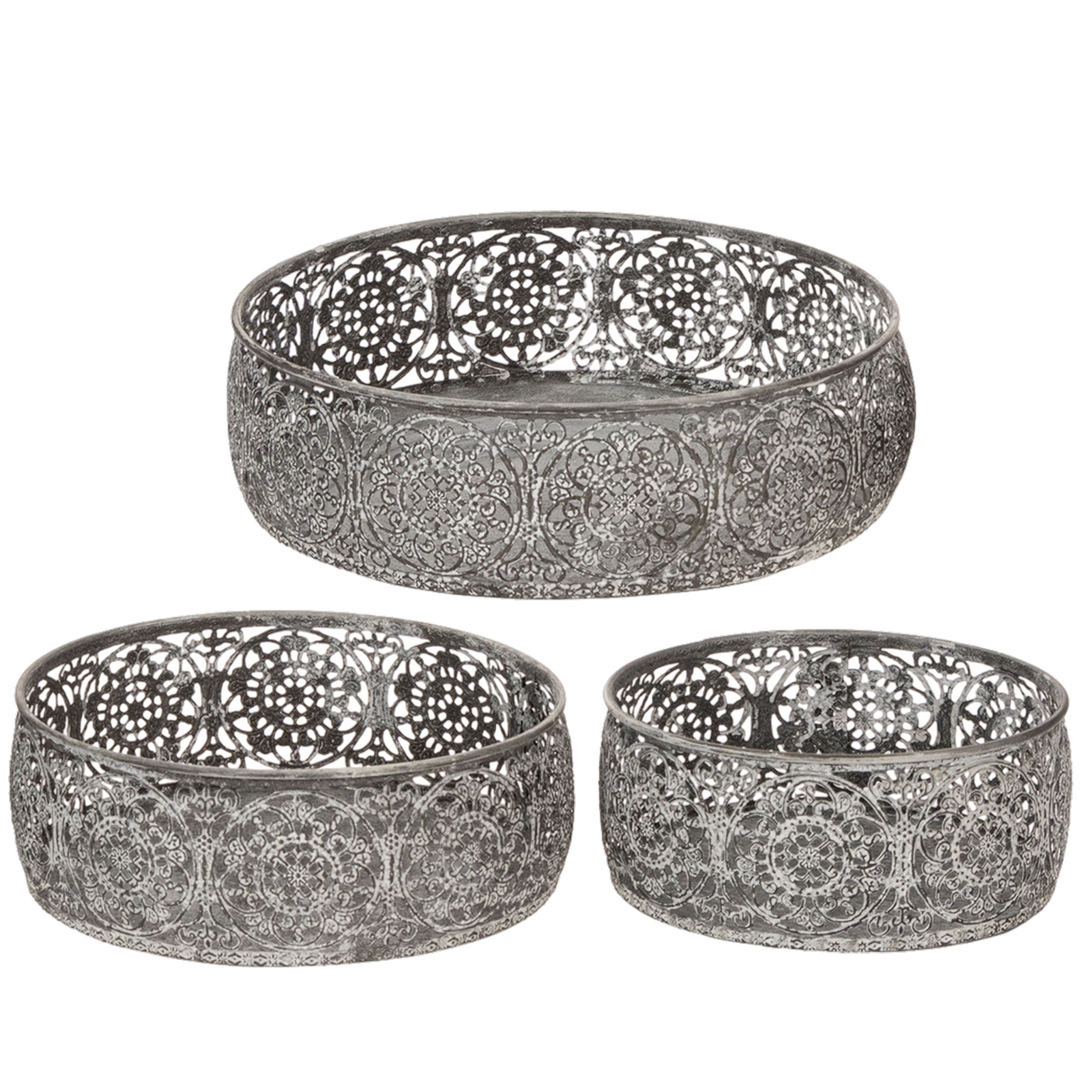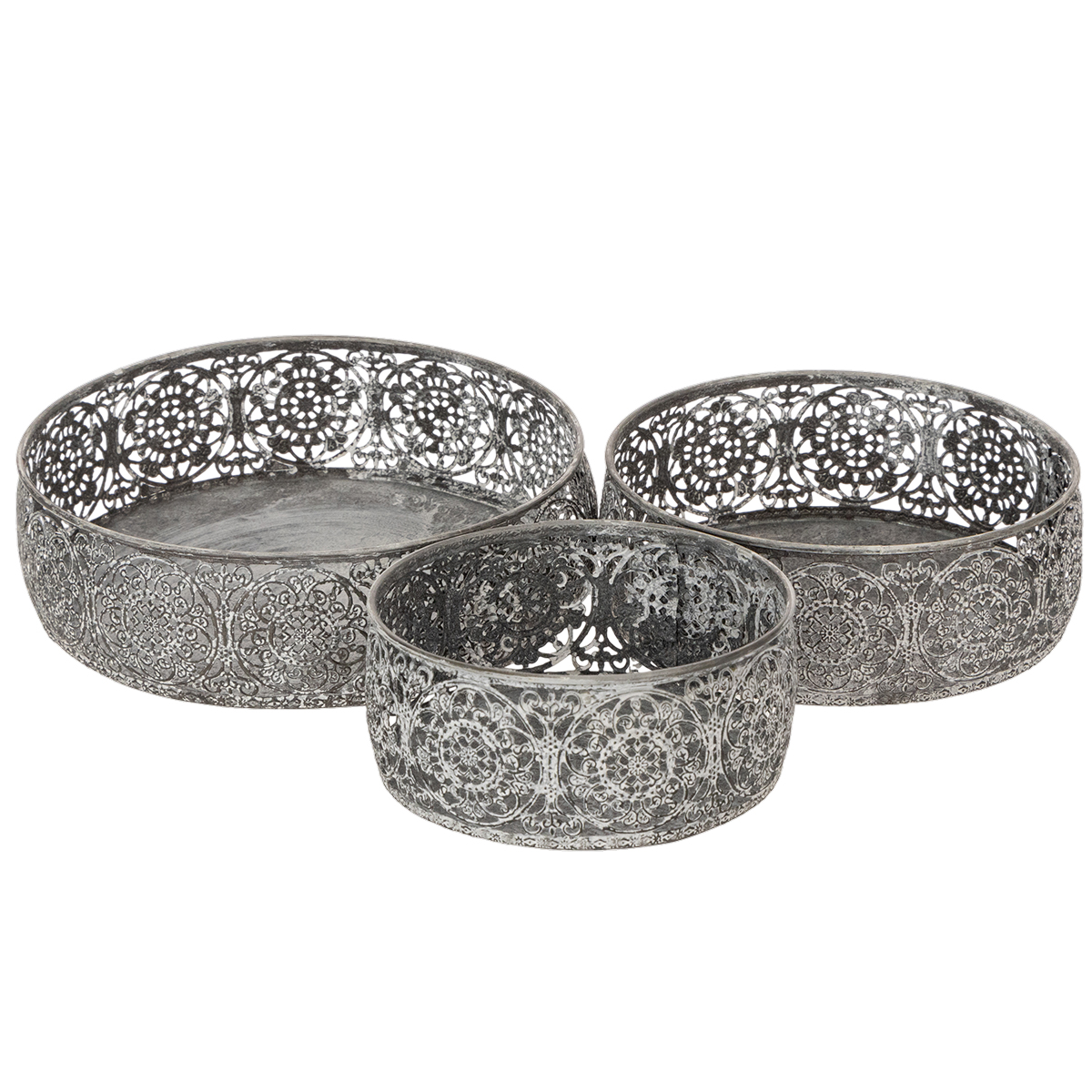 Dekorativní kovová miska, šedo-bílý vzor, Ø16/19,5/23,5 cm, sada 3 kusů