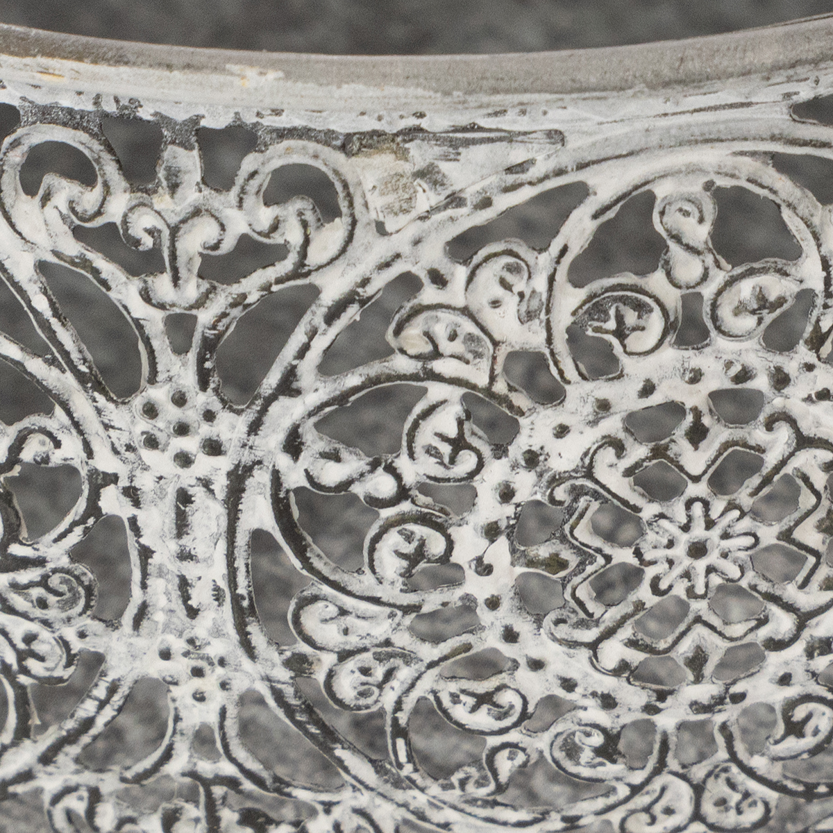 Tyto kovové dekorativní misky zdobené květinovými vzory zdobí stoly, komody nebo příborníky. Filigránové prohlubně vytvářejí okouzlující dekorace na vnější straně kovových mušlí.