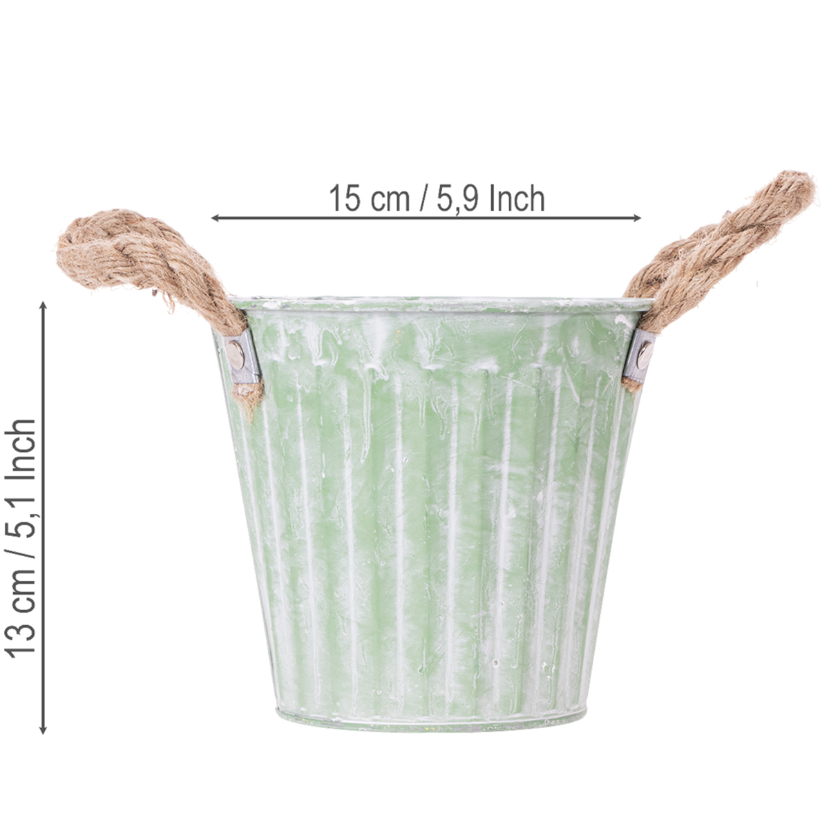 Tento kulatý dekorativní květináč s atraktivním pruhovaným vzorem v trendy shabby chic stylu se perfektně hodí jako kovový kbelík na sázení!