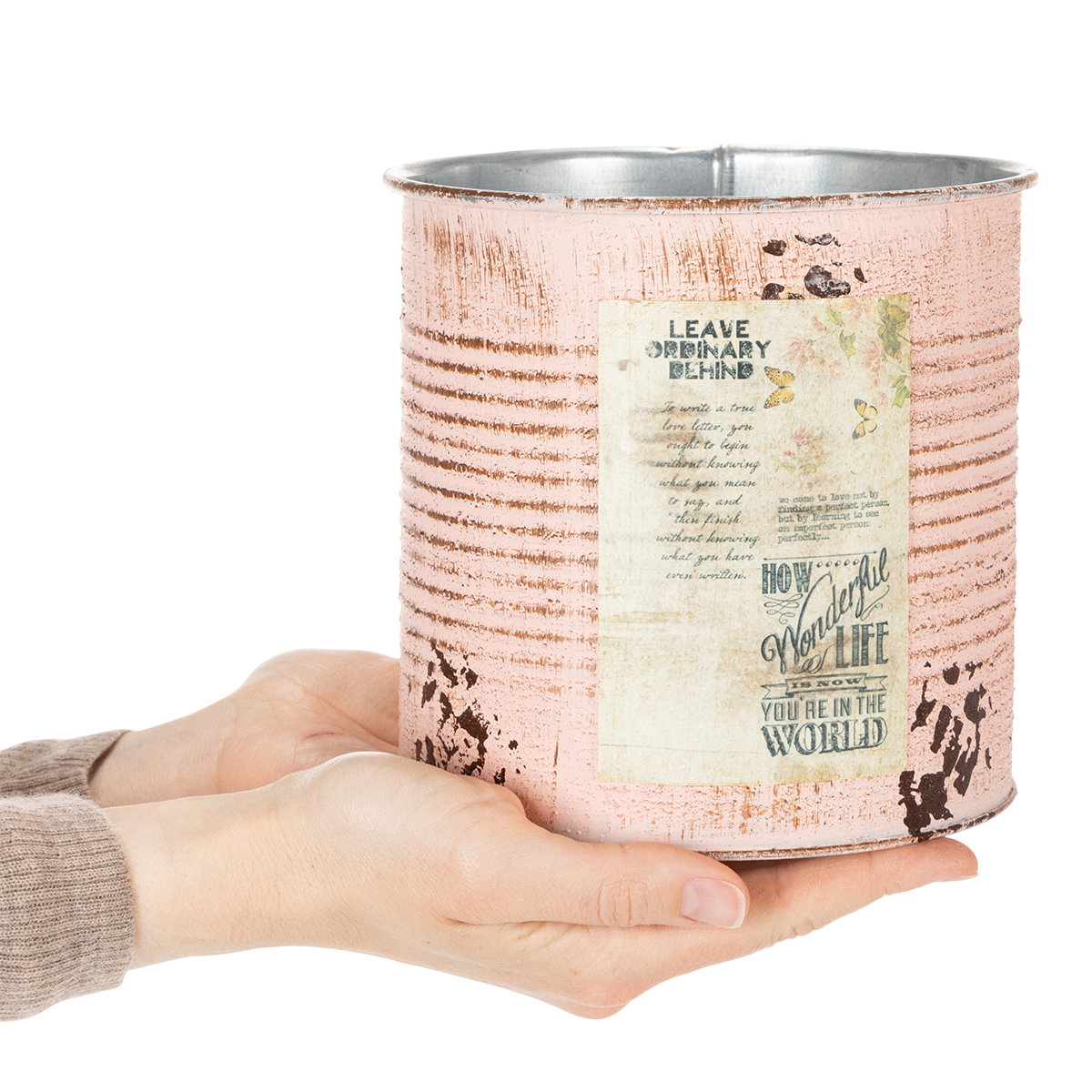 Tento lososově zbarvený květináč z ozdobné plechovky dělá léto barevným! Kovovou nádobu, náročně natřenou rzi ve spreji a vybranou pastelovou barvou, lze použít jako nádobu nebo květináč. Vintage nálepka podtrhuje rafinovaný, nostalgický vzhled plechovky. To, že kovová dekorace je vlastně úplně nová, je vidět pouze ze stříbrného vnitřku. Tento truhlík, který je speciálně vyrobený jako květináč, samozřejmě nemá uvnitř žádné ostré hrany.