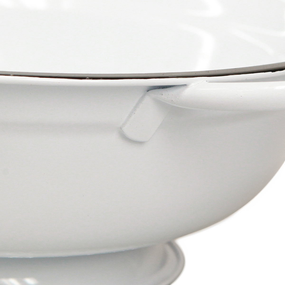 Naše kovové dekorační mísy v bílé/černé barvě kombinují stylovou eleganci s nostalgickým šarmem a jsou dokonalým společníkem pro vaše projekty dekorace na stůl a pokoj. Tyto kovové mísy zaujmou svým jemně zakřiveným tvarem a sofistikovaným smaltovaným vzhledem, který okamžitě dodá každé místnosti vintage nádech. Všechny tři misky mají průměr přibližně 20,5 cm a jsou univerzální. Ať už jako kulatá mísa pro láskyplně naaranžovaná květinová aranžmá nebo jako stylový úložný prostor pro drobné doplňky – tyto misky vždy zvýrazní.