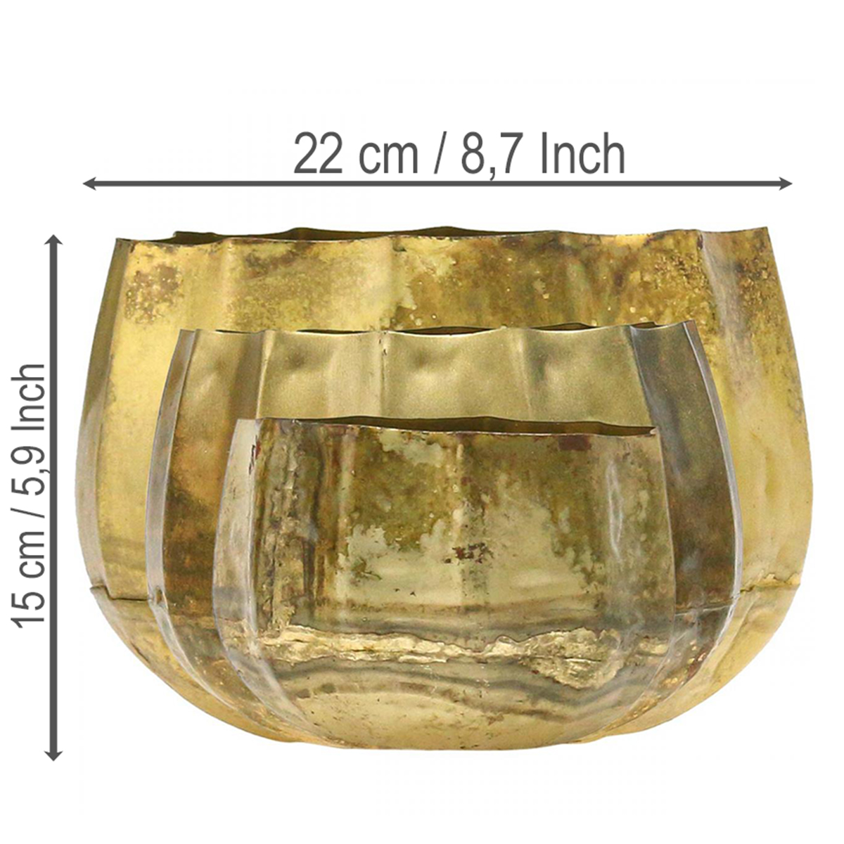 Prezentujte svá květinová umělecká díla obzvláště elegantním způsobem s dekorativní miskou z mosazi. Mosazné nádoby dostanete jako sadu se třemi různými velikostmi.