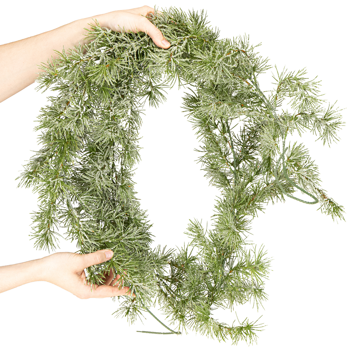 Tato dekorativní girlanda zaujme svým realistickým designem: jemná imitace modřínového jehličí v sytě zelené barvě, jejíž matný vzhled jí dodává lehce mrazivé kouzlo. Ať už ji ozdobně zavěsíte nad okenní rám nebo proměníte zábradlí na schodišti ve skutečný poutač pozornosti, tato girlanda vypadá skvěle kdekoli. Díky robustnímu plastovému materiálu ji můžete používat po mnoho let, aniž by ztratila kvalitu nebo intenzitu barev. Jehličí neopadá, nevysychá – tato modřínová girlanda si zachovává svou přirozenou krásu. Je vhodná zejména pro ty, kteří oceňují ekologičnost a praktičnost, aniž by museli obětovat své přírodní kouzlo.