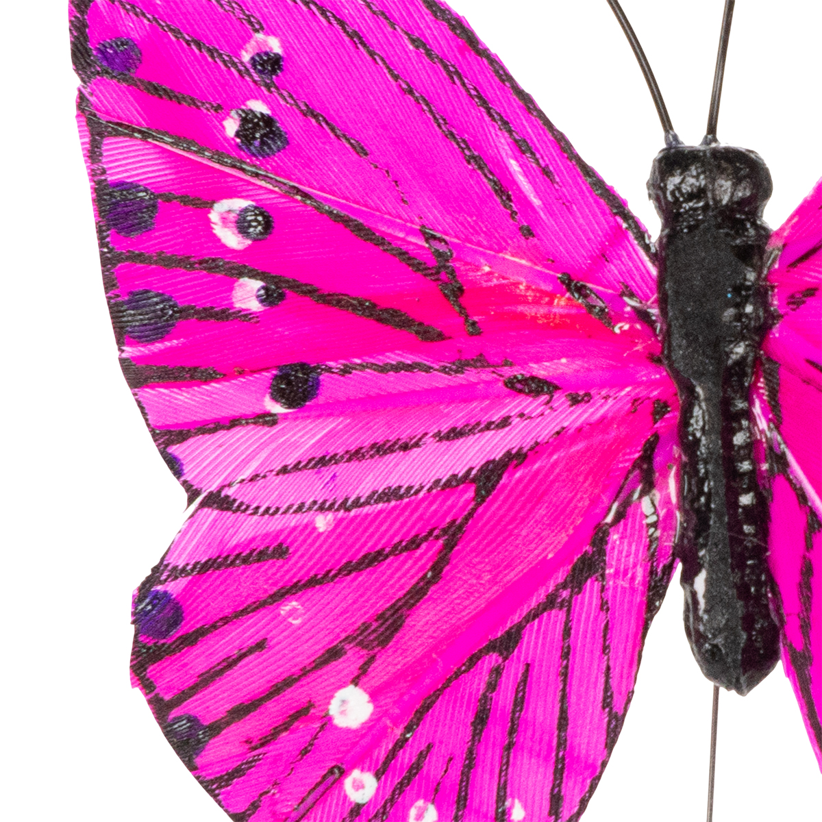 Sada nabízí obzvláště rozmanitou škálu barev. Od jemné krémové přes veselou oranžovou až po výraznou růžovou, každá barva je malým zvýrazněním. Materiál z pravého peří dodává motýlům extra nádech přirozenosti. Drát připevněný ke každému motýlovi má celkovou výšku 24 cm – ideální pro začlenění motýlů do květinových aranžmá nebo jejich umístění jako plovoucí dekorace na stůl.