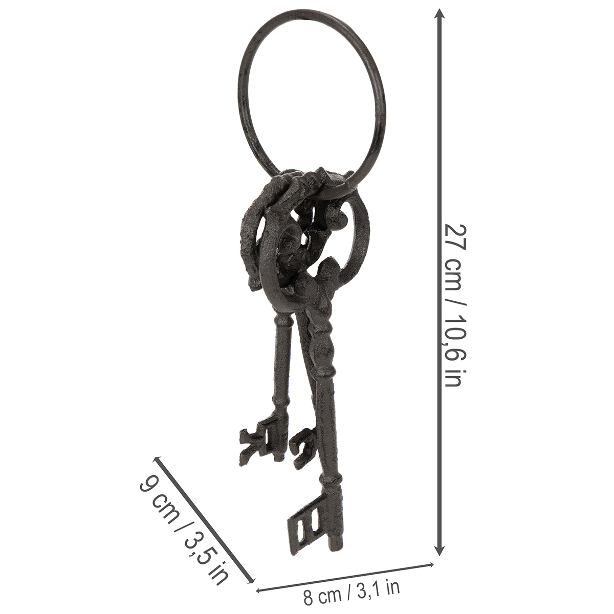 Teplá hnědá barva a vysoce kvalitní litina dodávají tomuto přívěsku na klíče rustikální a autentický vzhled. Ať už jej použijete samostatně nebo v kombinaci s jinými nostalgickými dekoracemi, tento vintage přívěsek na klíče se perfektně hodí do venkovského stylu, shabby chic nebo industriálního designu. Popusťte uzdu své kreativitě a objevte jeho rozmanité využití!