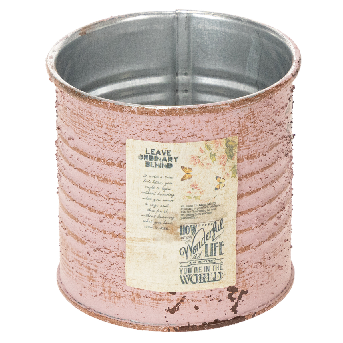 Jako originální květináč přesvědčí tato starorůžová dekorativní krabička v rostlinné výzdobě nostalgickými detaily! Vnitřek květináče je jednoduše stříbrný. Zvenku naopak vyzařuje vintage kouzlo: jemná růžová vrstva laku byla pečlivě vykartáčována - tak se na charakteristických žebrech plechovky dostává světle hnědá rezavá barva. Malované rezavé skvrny a vintage nálepka na zahradu dotvářejí dobře promyšlenou ošuntělou eleganci.