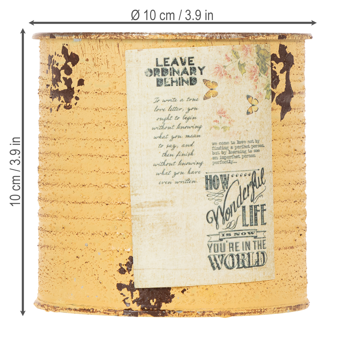 Plechovka jako ozdobná plechovka v meruňkové barvě je skvělým trendem pro letní rostliny! Květináč, klasicky vyrobený z kovu, má uvnitř stále světle stříbrnou barvu plechovky. Vnější strana květináče je lakována ve dvou barvách v rzi a oranžové a navíc zdobena umělými rezavými skvrnami. Zasněná, nostalgická etiketa doplňuje vintage dekoraci malého kovového květináče. Kovový květináč má samozřejmě místo ostrých hran svého vzoru hladké hrany. Plechovou dekoraci tedy snadno využijete i při ručních pracích s dětmi a zahrádkáři.