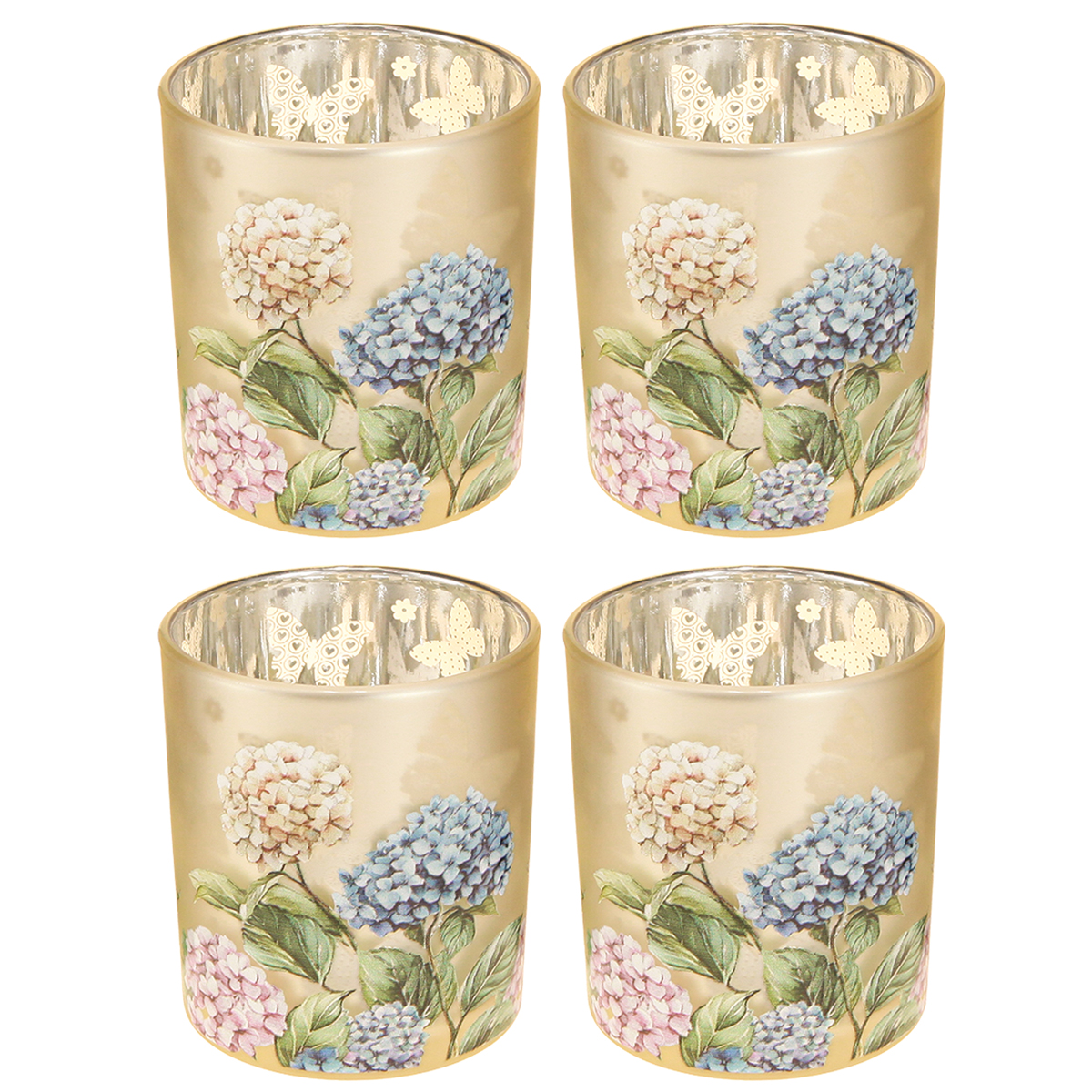 Dekorativní skleněná lucerna s květinovým vzorem pro stylové bytové doplňky, 8 cm, 4 kusy.