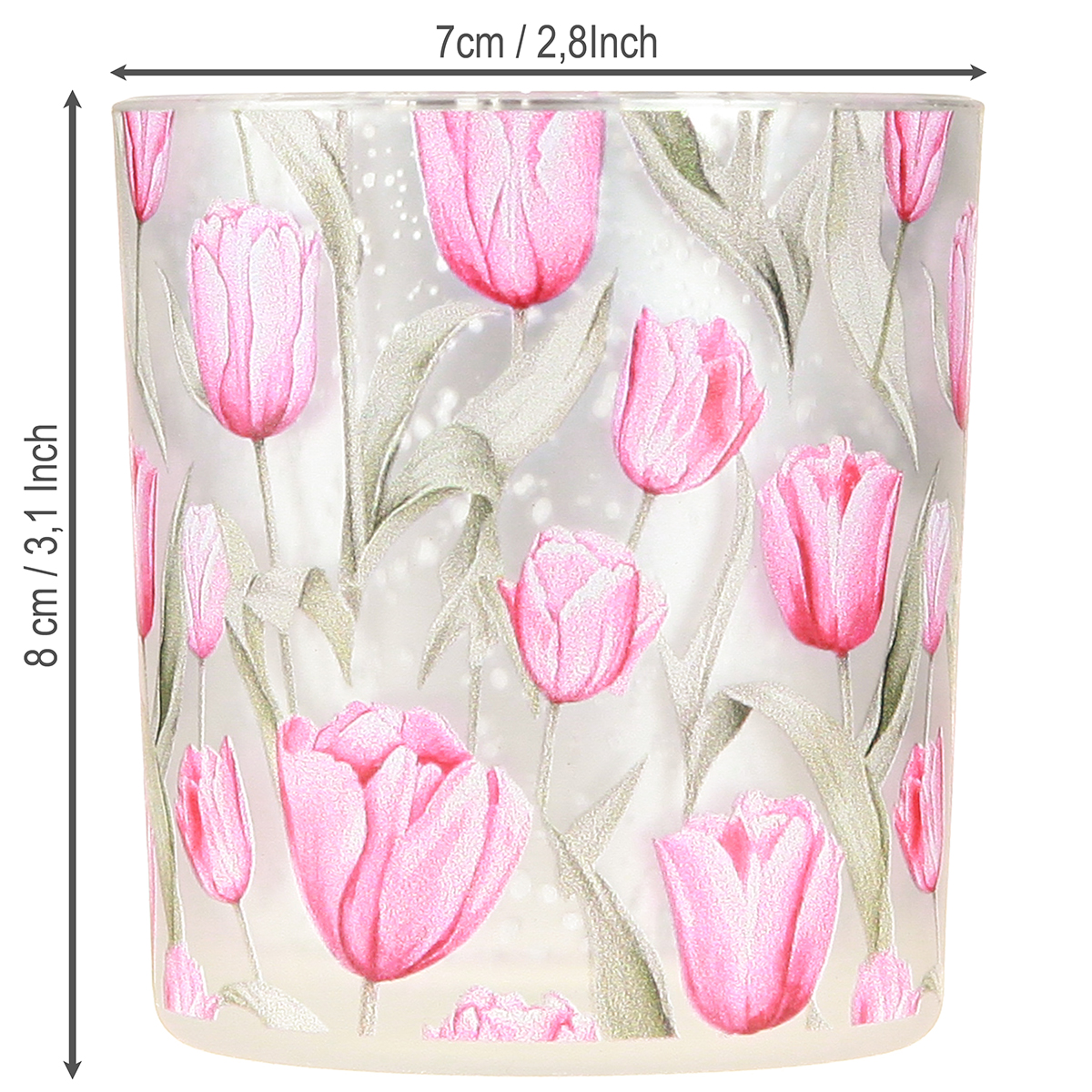 Název produktu: Dekorativní skleněná lucerna s tulipánovým vzorem pro jarní dekoraci domova, 8 cm, 4 kusy.