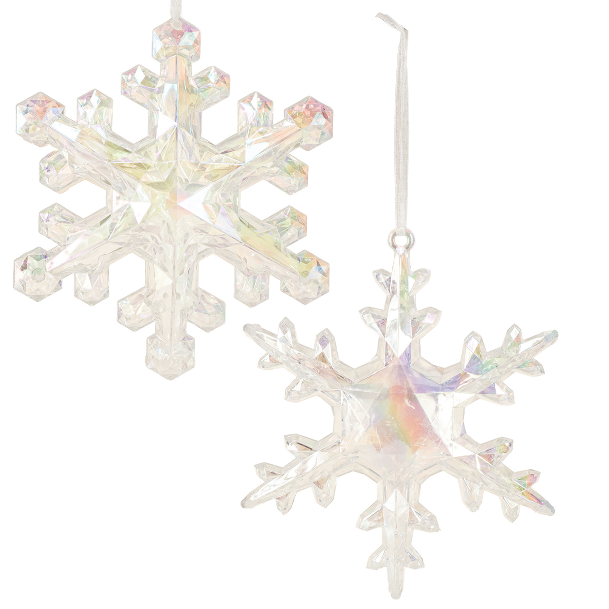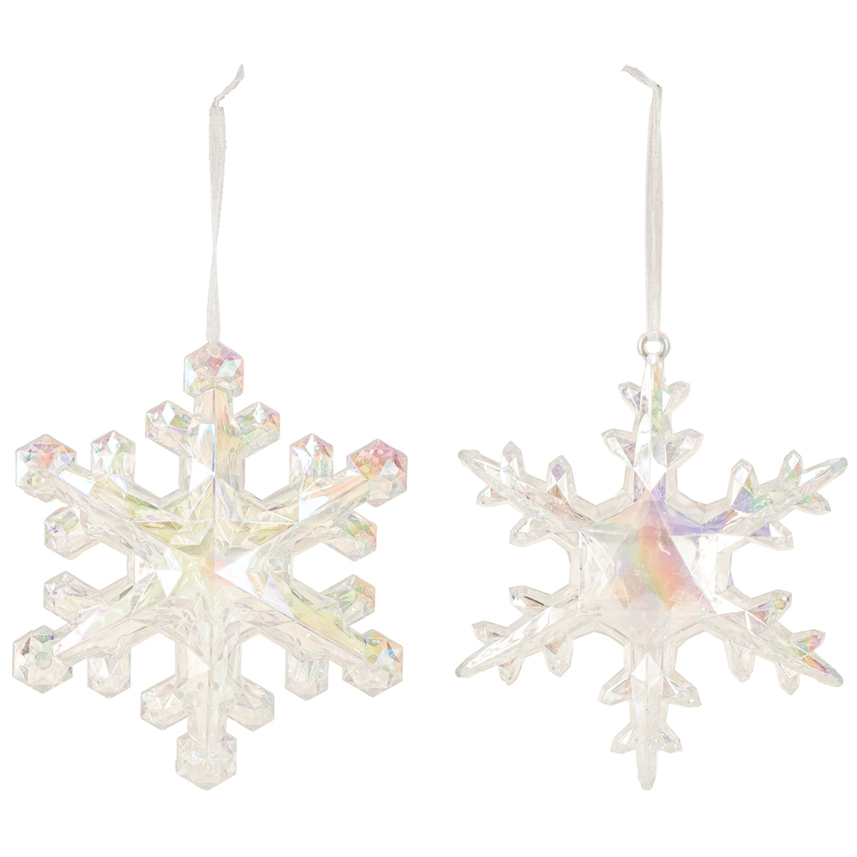 Dekorativní sněhové vločky, zimní dekorace, duhové, Ø14–15 cm, 2 kusy