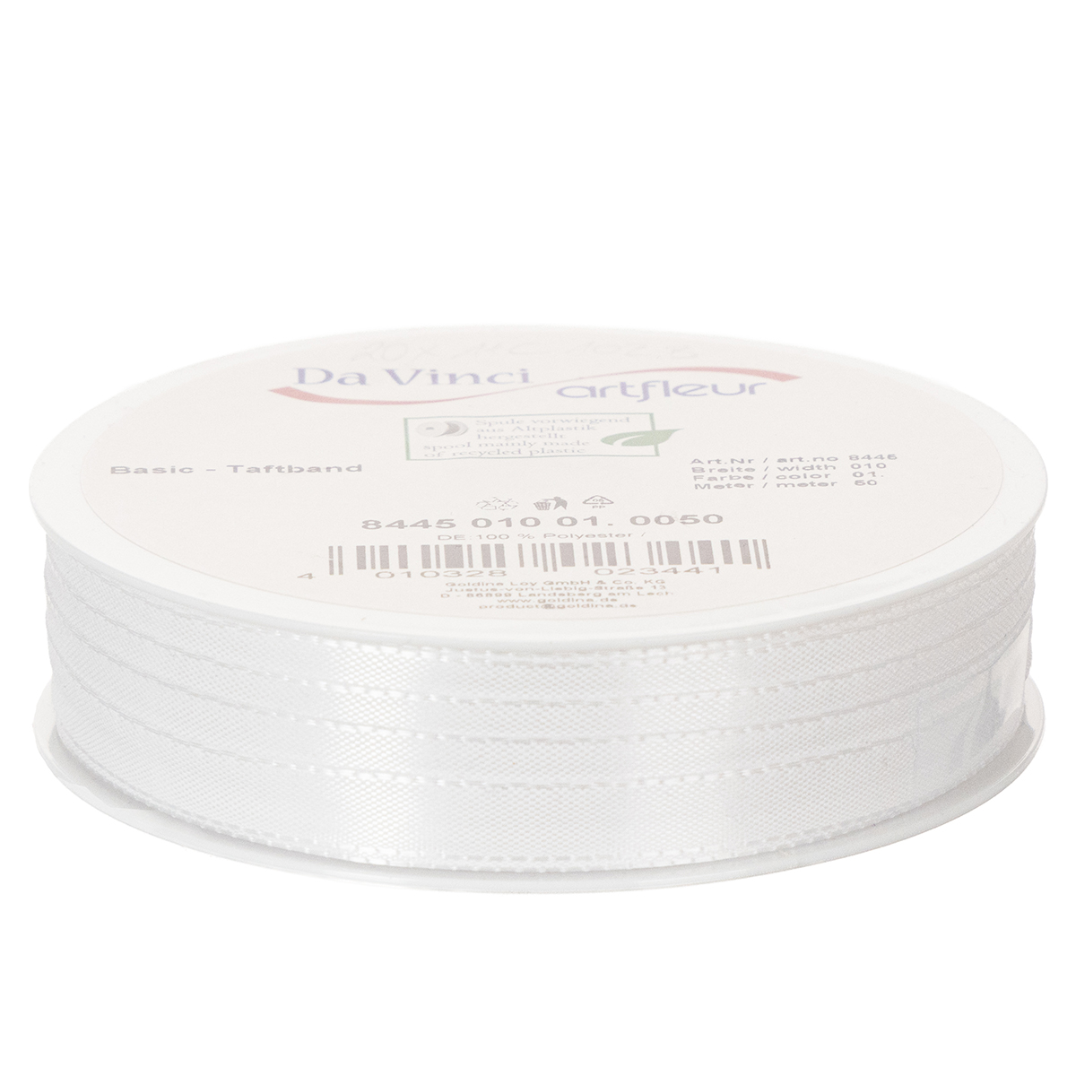 Dekorativní taftová stuha, bílá, šířka 10 mm, délka 50 m