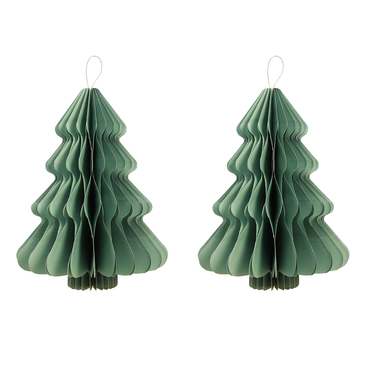 Dekorativní závěsný papírový vánoční stromeček mátově stříbrný V40cm 2 ks