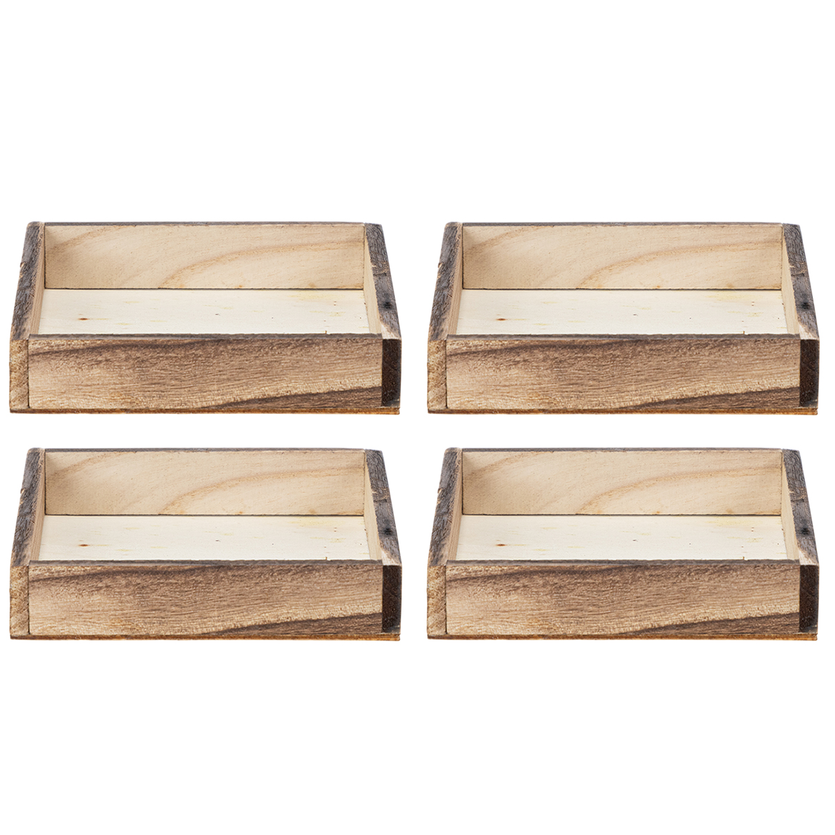 Dřevěný podnos, rustikální design, ideální pro dekoraci domácnosti nebo kanceláře, 15 cm, 4 kusy