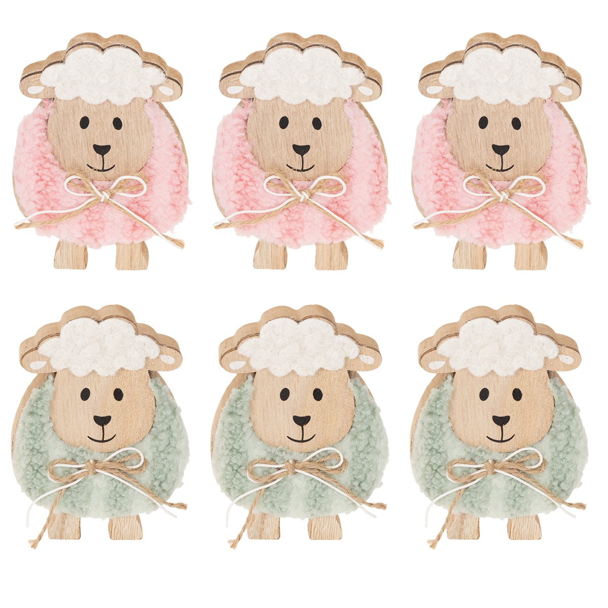 Dřevěná dekorace ovečky, roztomilá dekorativní figurka na jaro a Velikonoce, dekorace na stůl, 11 cm, 6 kusů