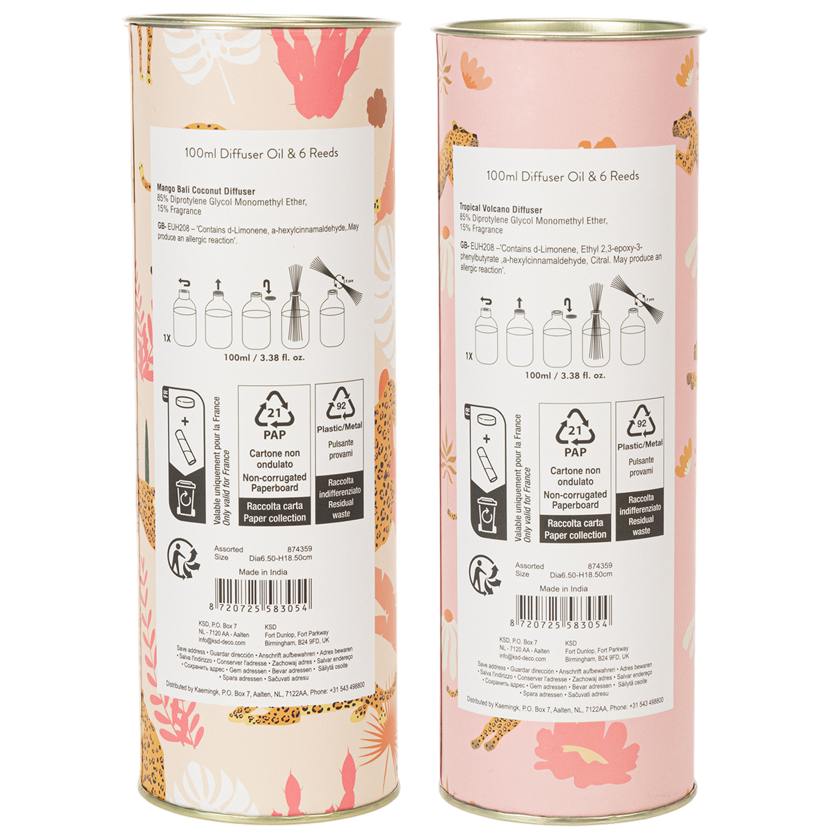 Tyto difuzéry do pokoje uvolňují dvě neodolatelné vůně: manga a kokosu. Kombinace ovocné sladkosti a krémových tropických tónů vytváří ve vašem obytném prostoru relaxační a příjemnou atmosféru. Sada dvou difuzérů vám umožňuje provonět váš domov různými způsoby, dokonale přizpůsobenými vašim místnostem nebo náladám. Ať už je umístěn na odkládacím stolku v obývacím pokoji, použit jako dekorativní prvek v koupelně nebo jako příjemná vůně ve vstupní hale, difuzér harmonicky zapadne do jakéhokoli prostředí. Skleněné lahvičky o průměru šest centimetrů a výšce 19 centimetrů jsou nejen praktické, ale také vizuálně přitažlivé díky svému vícebarevnému designu.