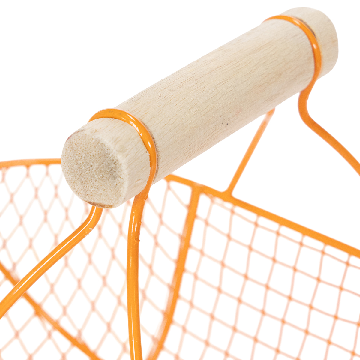 Drátěný koš s dřevěnou rukojetí – Praktický design pro okouzlující dekorace