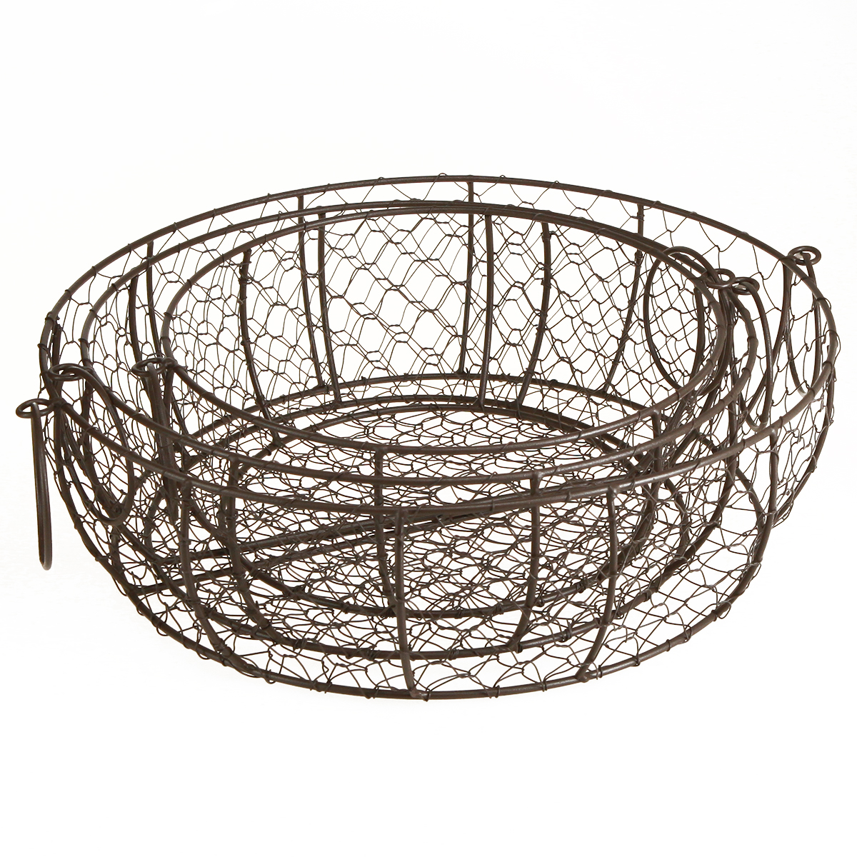 Drátěná miska na košík s uchem Hnědá Ø35/30/25cm Sada 3 ks