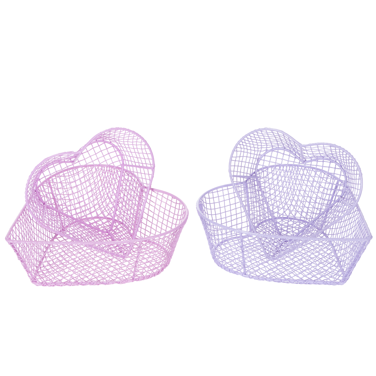 Vytvořte romantickou a zároveň organizovanou atmosféru s těmito krásnými drátěnými košíky ve tvaru srdce. Ať už je použijete jako dekorativní prvek na stole, k uložení drobností nebo jako stylovou dárkovou sadu, tyto kovové košíky ve tvaru srdce vnesou do vašeho domova lásku a pořádek. Košíky jsou vyrobeny z pevného kovu a dodávají se v jemných růžových a fialových odstínech. Jsou ideální pro použití v obytných prostorách nebo chráněných venkovních prostorách a jsou ideální volbou pro romantickou výzdobu stolu při zvláštních příležitostech, jako jsou svatby, Valentýn nebo narozeniny.