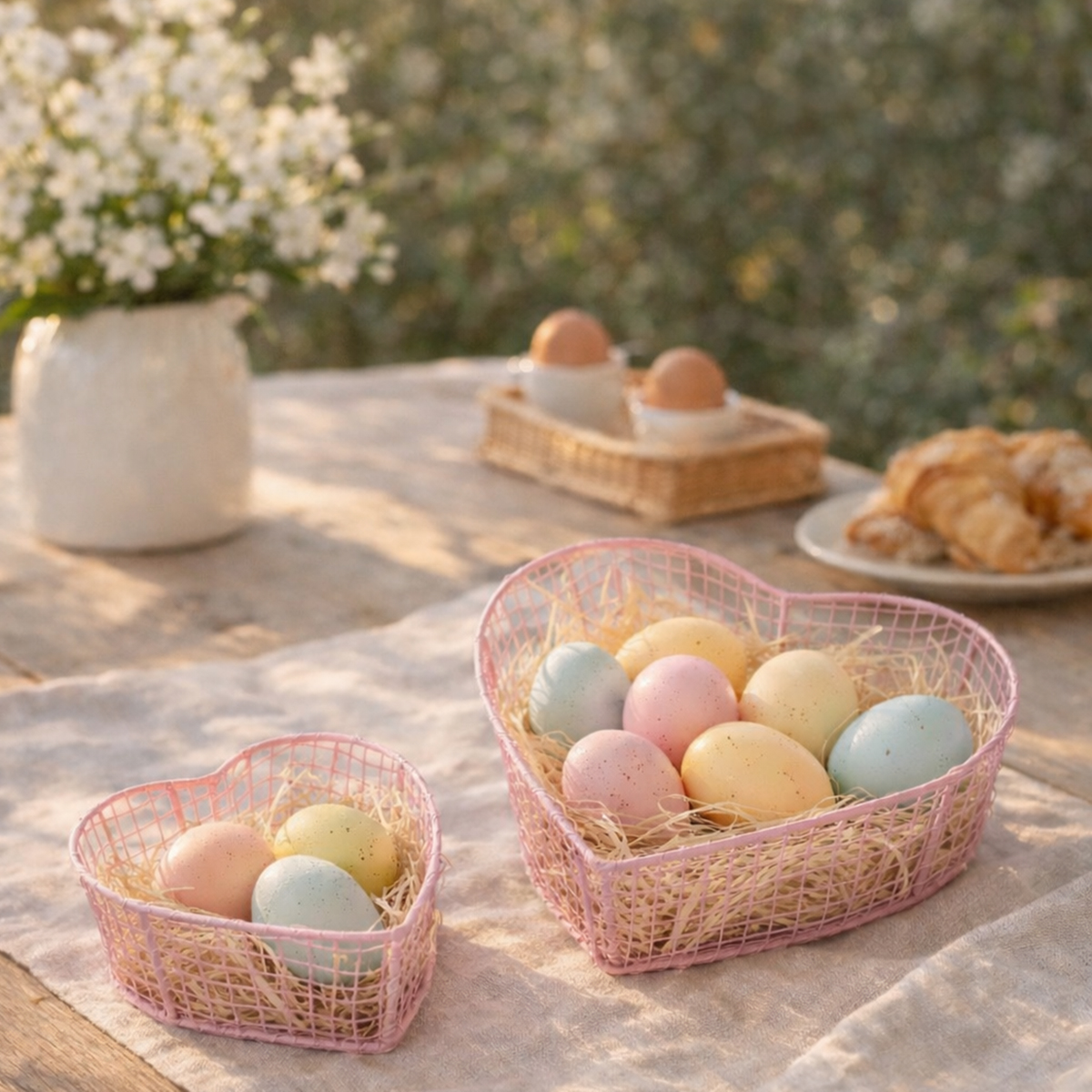 Drátěný koš ve tvaru srdce – romantická dekorace a praktická organizace
